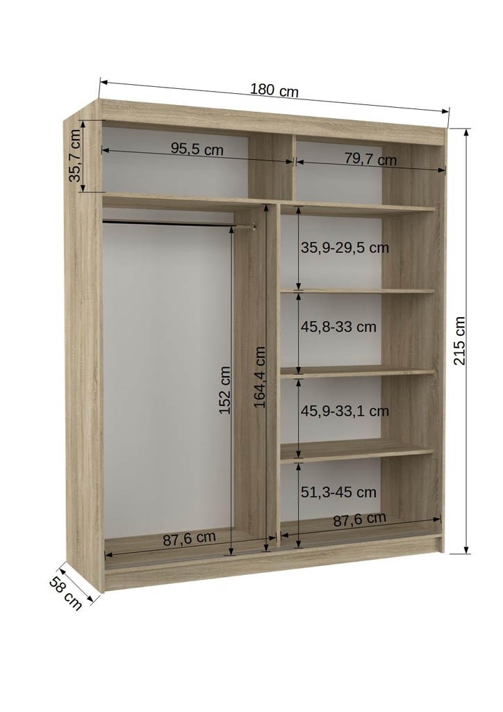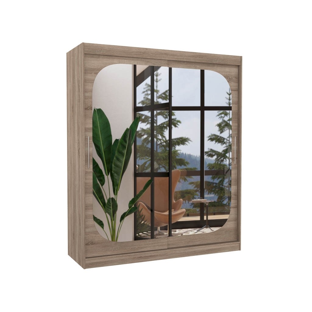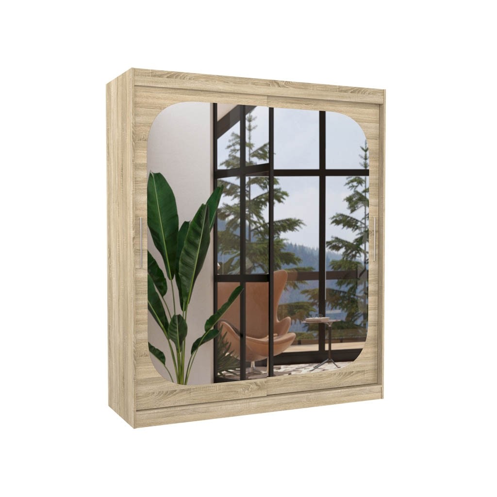 Garderobna omara ARIZONA se lahko pohvali z lepim dizajnom in veliki ogledalom, ki sega čez celotno omaro. Garderobna omara vsebuje police na katere lahko odložite oblačila in obešalno palico, ki vam bo služila za obešanje boljših oblek. Na voljo je v več barvah.