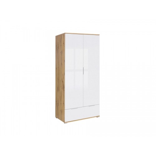 Garderobna omara je na voljo v kombinaciji hrasta in bele barve visokega sijaja, ki bo osvetlila vaš prostor. Garderobna omara nudi veliko shranjevalnega prostora za vaša oblačila, kar zagotavlja urejen videz vaše spalnice.