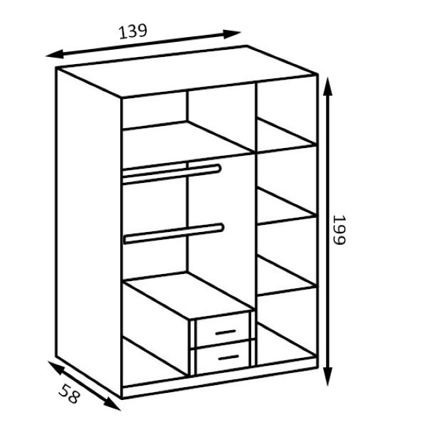 Desni del omare vključuje tri manjše police, na levi strani pa prejmete eno večjo polico in dve palici za obešanje. Omara ima tudi dva predala tako da nudi obilo prostora za shranjevanje in dobro organizacijo vseh otroških oblačil in modnih dodatkov. Na srednjih vratih je vgrajeno še priročno visoko ogledalo.