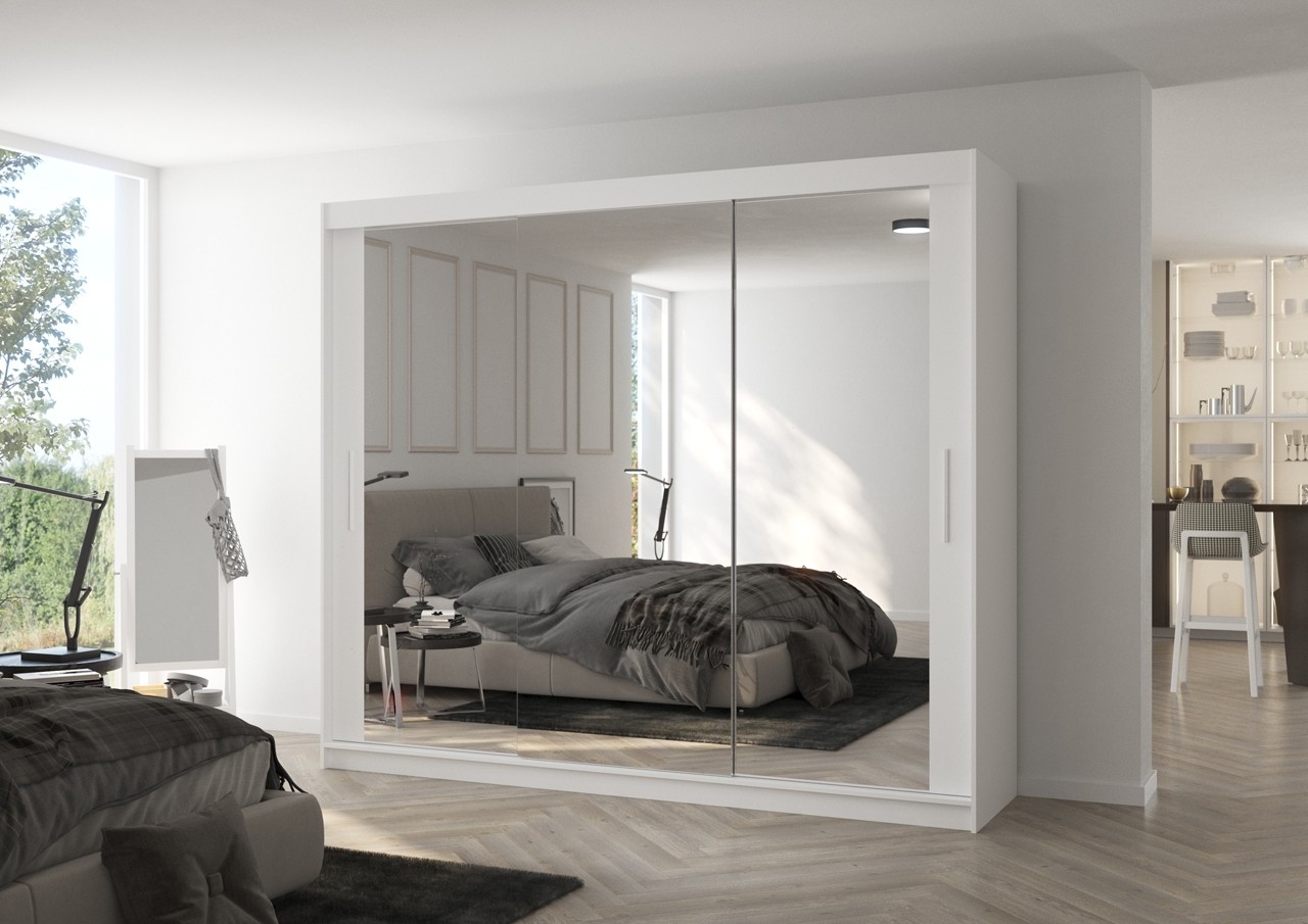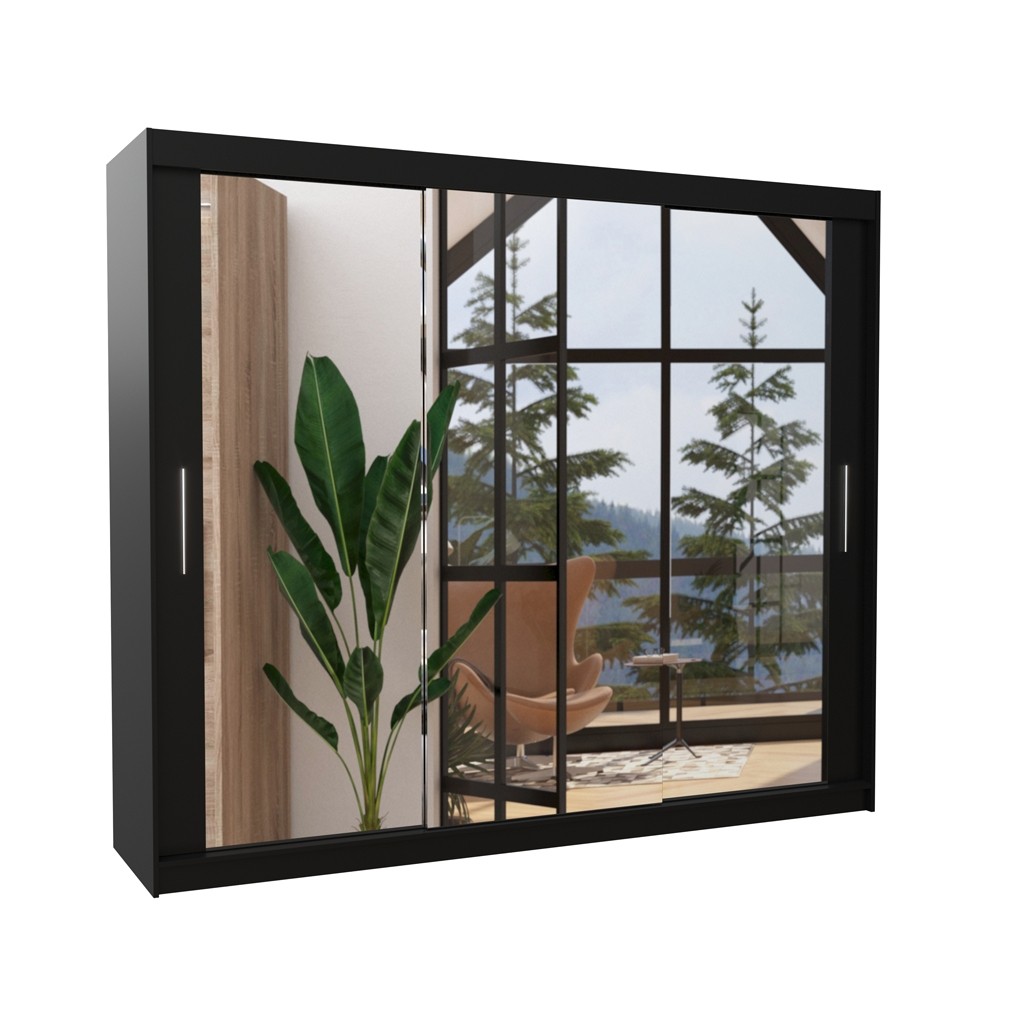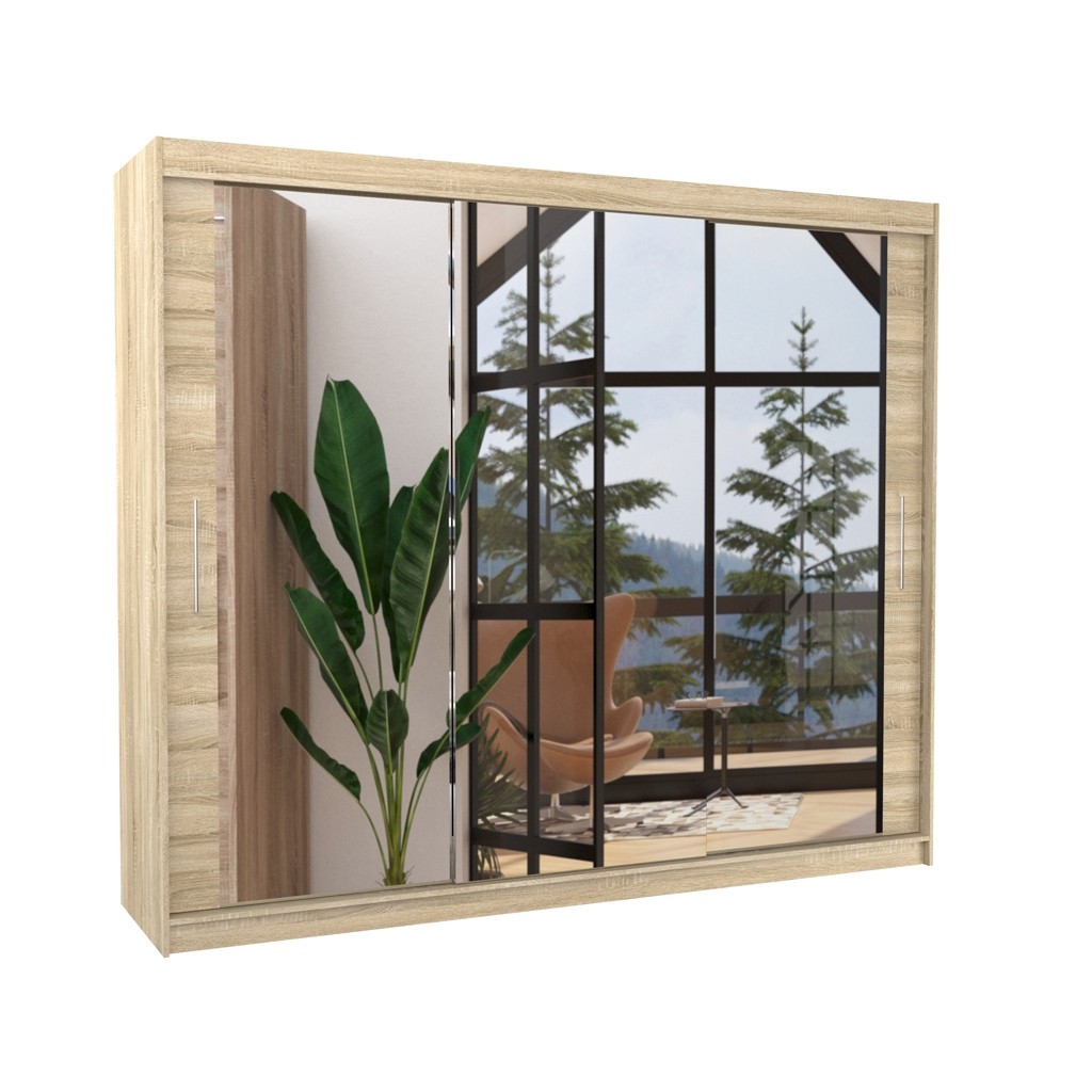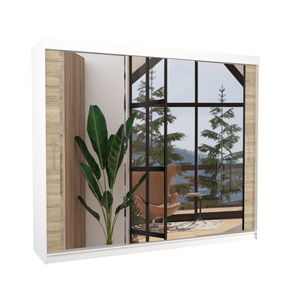 Dvodelna garderobna omara CHESTER 250 CM je primer funkcionalnosti in sodobnosti. Ta omara vsebuje drsna vrata in je popolna za tiste, ki iščejo praktično in estetsko rešitev za svoje potrebe po shranjevanju in obešanju oblačil. Omara vsebuje 9 polic in široko obešalno palico.