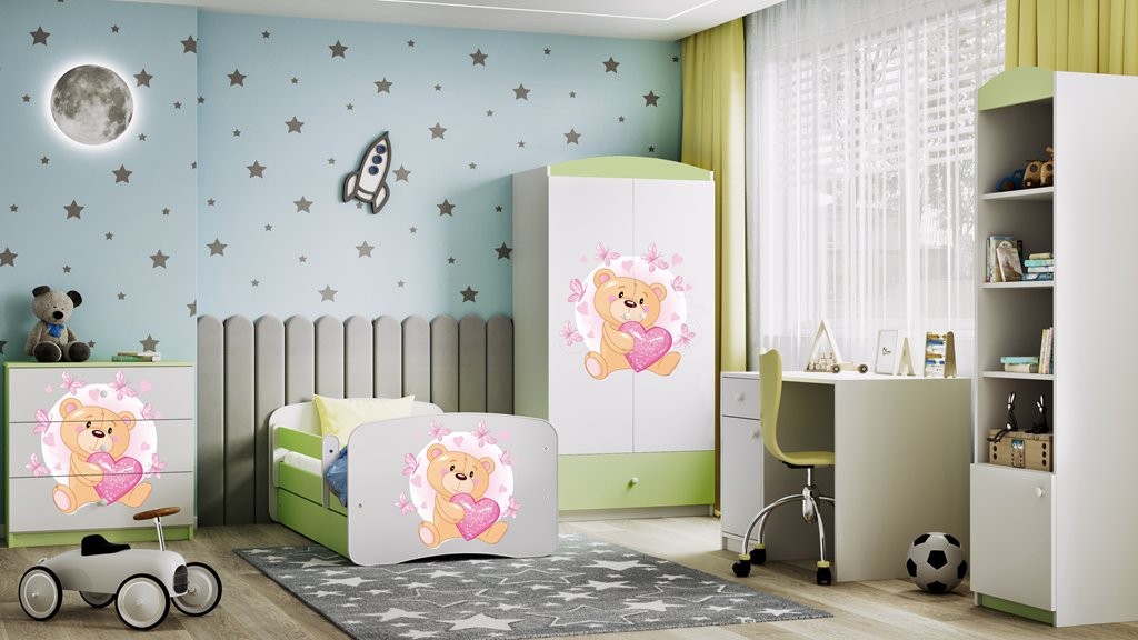 Garderobna omara Dreamy medvedka je praktična izbira za otroško sobo, saj združuje pregledno shranjevanje oblačil in drugih potrebščin v enem kosu pohištva. Na voljo je v več barvah, zato jo je lažje uskladiti z različnimi otroškimi sobami. Izdelana je iz kvalitetne mediapan plošče v kombinaciji z oplemeniteno iverno ploščo kar zagotavlja dolgoletni obstoj in dobro ohranjenost.