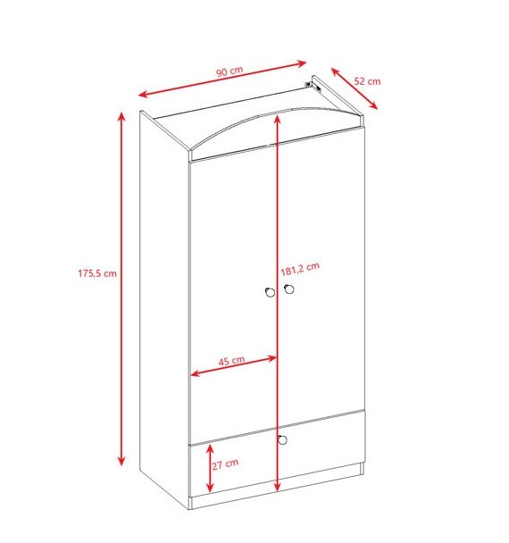 Ustvarite prijeten ambient v otroški sobici s prikupno garderobno omaro DREAMY, ki se ponaša z unikatnim dizajnom prineske in konja, ki bo v veselje vsaki deklici! Omara ima dva prostorna predala za nogavičke in razne modne dodatke, zgornji del pa vključuje police in palico za obešanje zato bodo otroška oblačila vedno lepo pospravljena in organizirana.