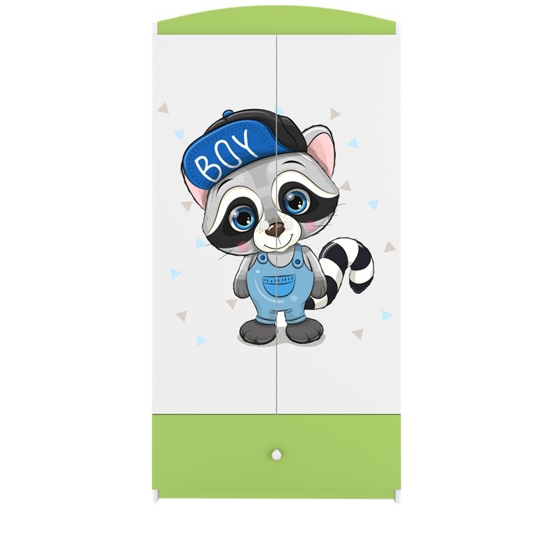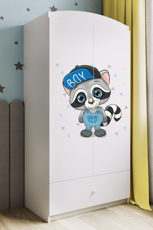 Garderobna omara Dreamy rakun je praktična izbira za otroško sobo, saj združuje pregledno shranjevanje oblačil in drugih potrebščin v enem kosu pohištva. Na voljo je v več barvah, zato jo je lažje uskladiti z različnimi otroškimi sobami, izdelava iz oplemenitene iverne plošče v kombinaciji s kvalitetnim mediapanom kar zagotavlja brezskrbno vsakodnevno uporabo ter dolgoročno ohranjenost omare.