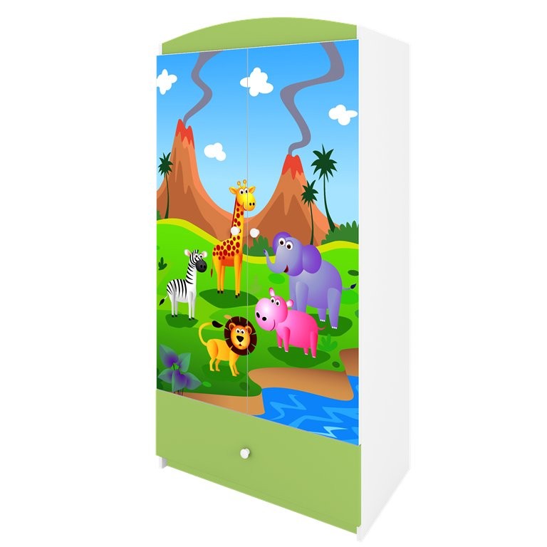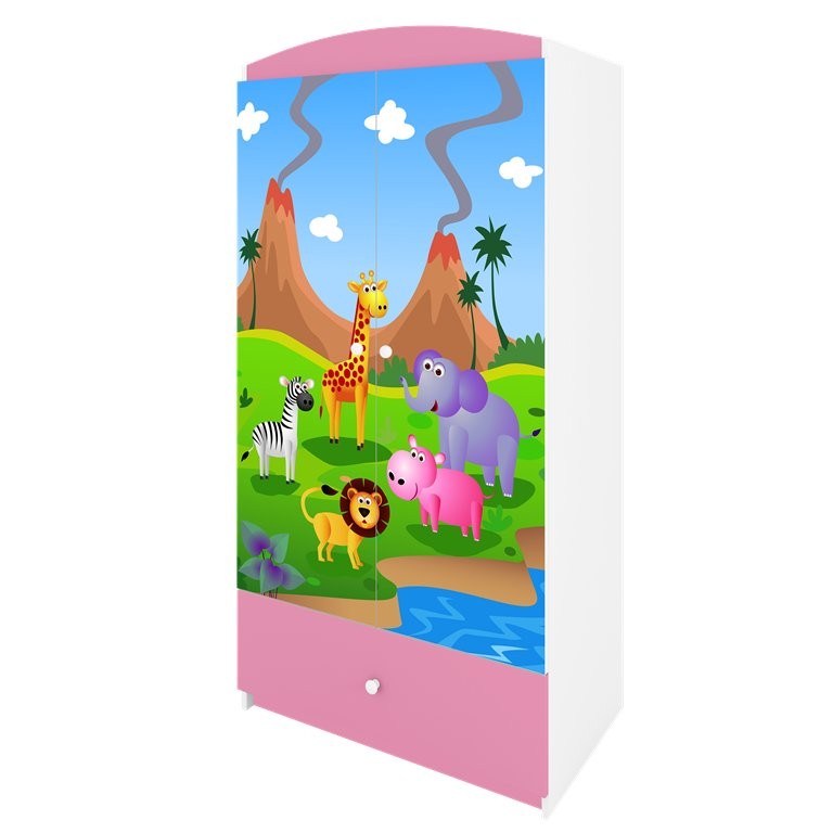 Garderobna omara Dreamy safari je praktična izbira za otroško sobo, saj združuje pregledno shranjevanje oblačil in drugih potrebščin v enem kosu pohištva. Na voljo je v več barvah, zato jo je lažje uskladiti z različnimi otroškimi sobami, izdelava iz oplemenitene iverne plošče v kombinaciji s kvalitetnim mediapanom ki zagotavlja dolgoletno ohranjenost in brezskrbno uporabo pohištva.