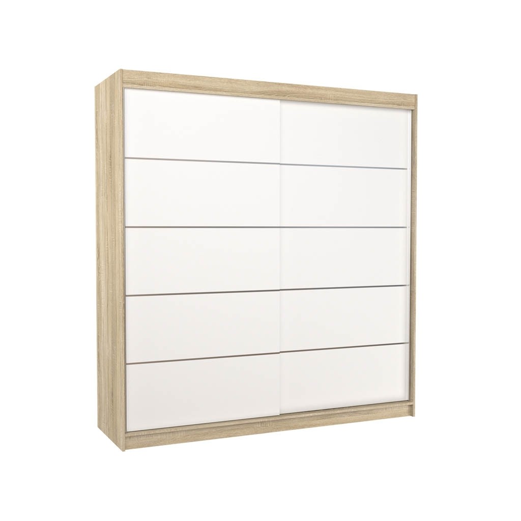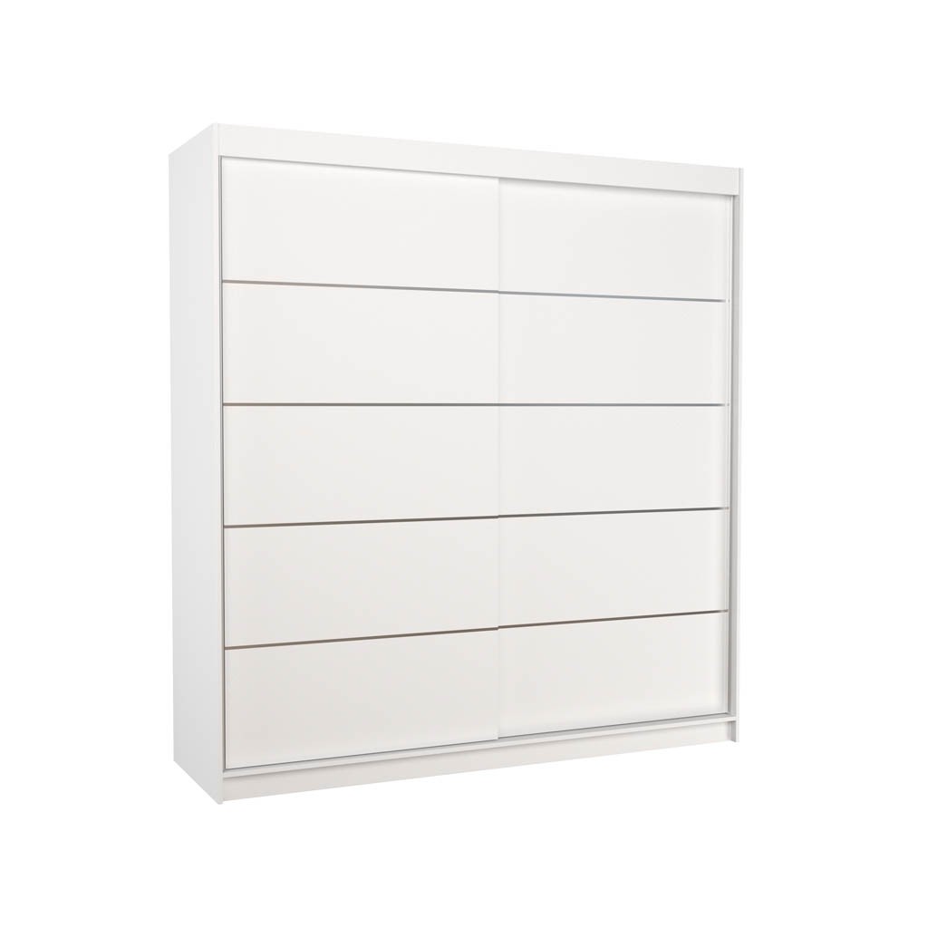 Garderobna omara ESTEVA je modernega izgleda in vsebuje funkcijo drsni vrat. Garderobna omara vsebuje devet polic in na sredini obešalno palico, ki vam bo v pomoč pri obešanju boljših oblek in srajc. Omara je na voljo v več barvah, kar pomeni, da zadovolji tudi zahtevne kupce.