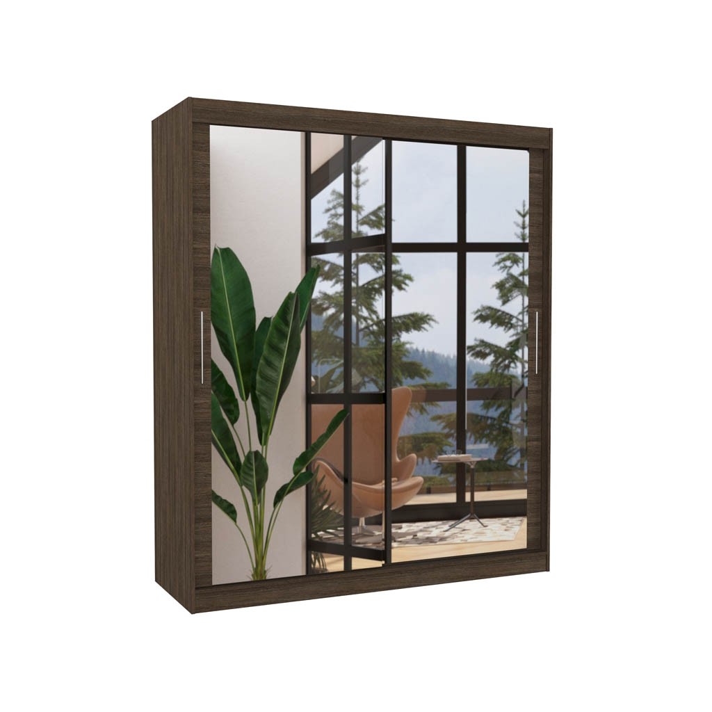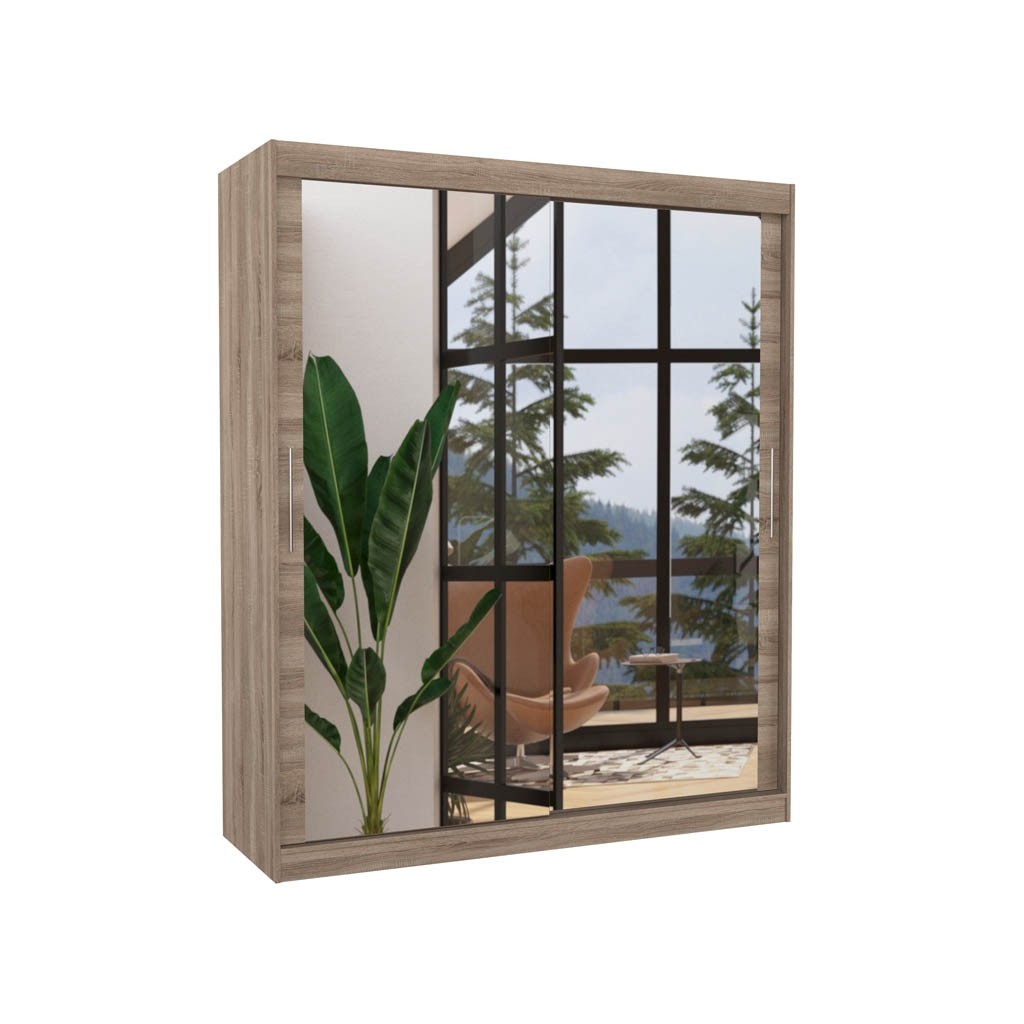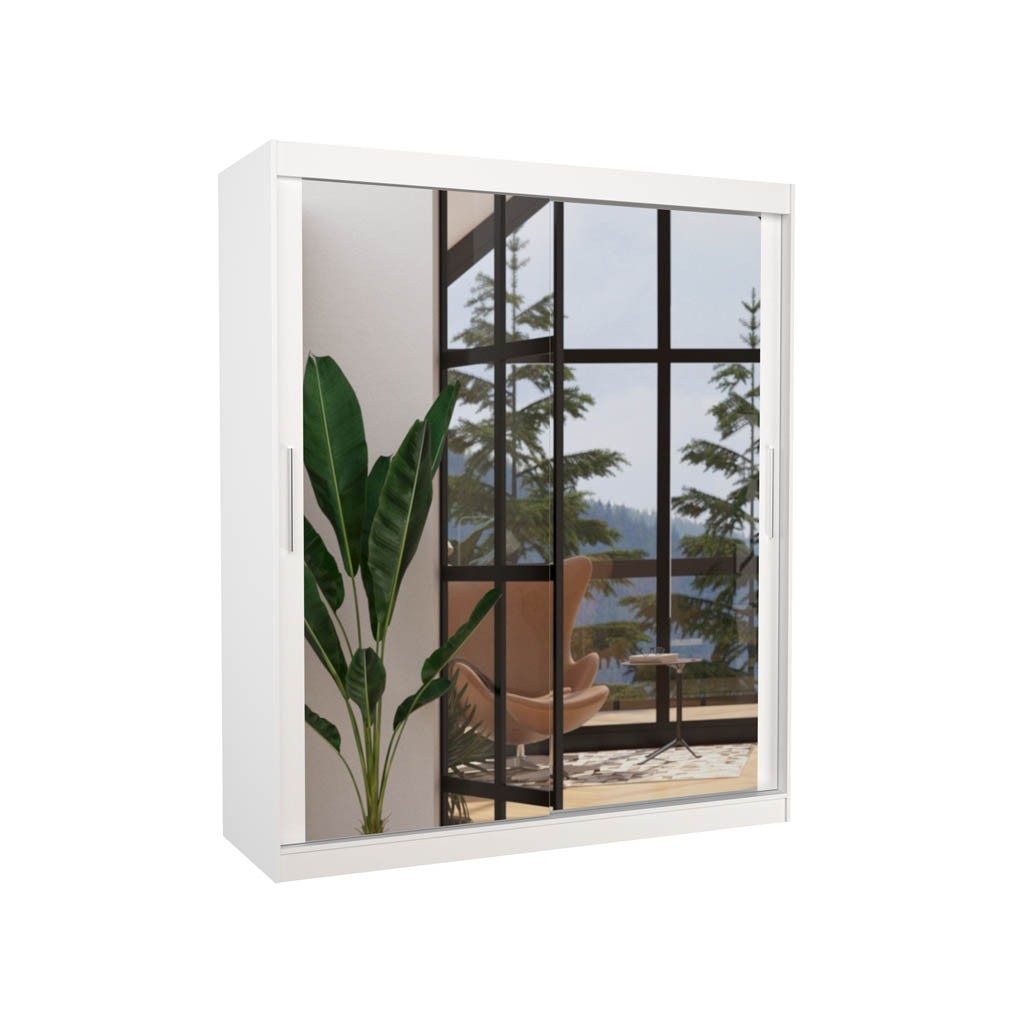 Garderobna omara ETTORE ima celoten sprednji del v ogledalu, kar optično poveča prostor in daje možnost urejenega videza. Omara vsebuje police in obešalno palico, ki omogočajo, da so vaša oblačila vedno pospravljena in vaš prostor urejen. Na voljo v več barvah.