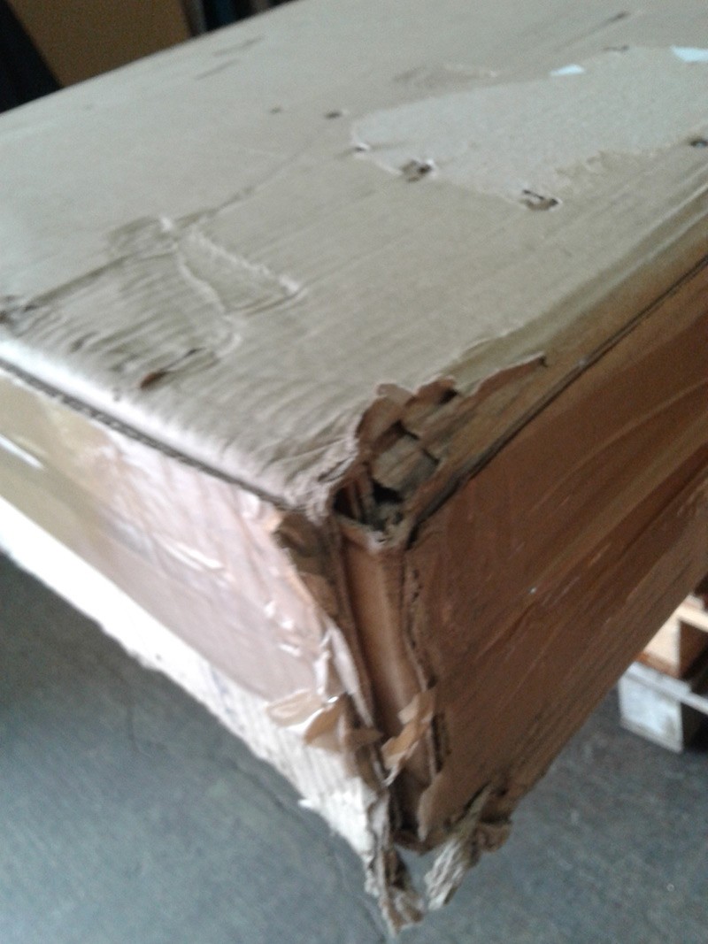 Uničena je embalaža in poškodovan rob zunanje stranice! Slike poškodb so priložene.