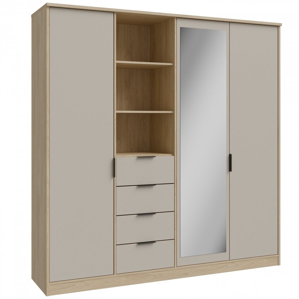 Garderobna omara FORTASTA FQSS942R (bež) je odlična izbira za vsak dom, saj nudi veliko prostora za shranjevanje oblačil in dodatkov. Kakovosten iveral in elegantna bež barva bosta popestrila vašo spalnico ali predsobo.