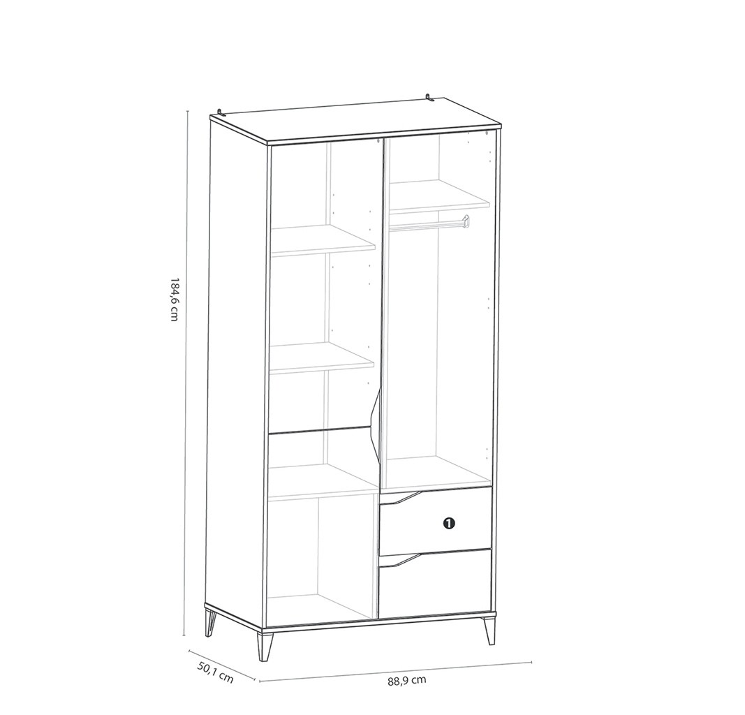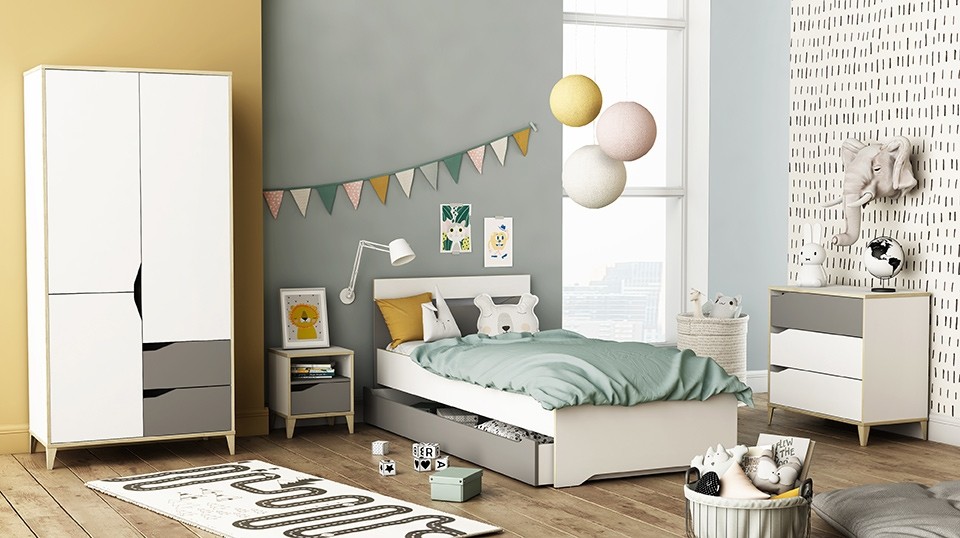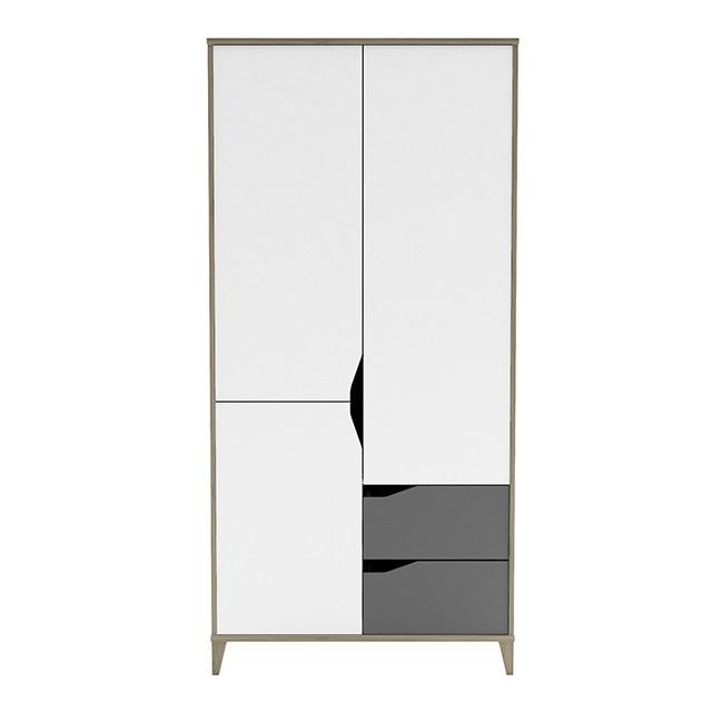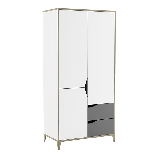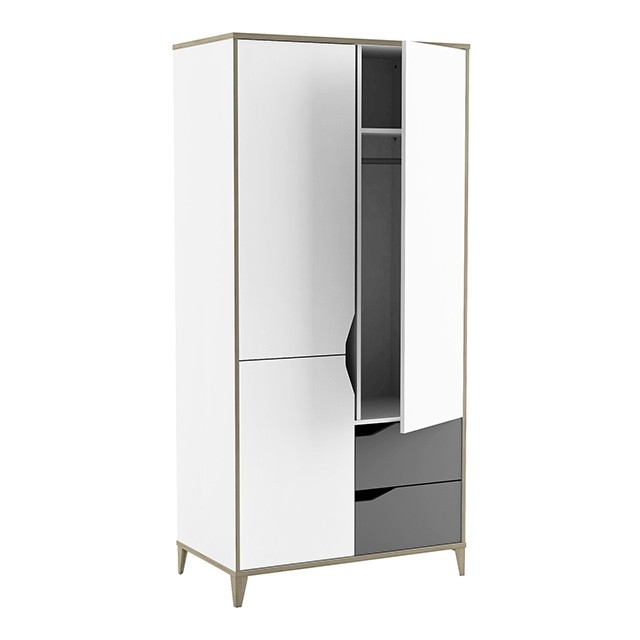Moderno zasnovana garderobna omara GENIUS je na voljo v kombinaciji sive in bele barve, zato je primerna tako za fante kot za punce. Ima dva predala in troje vratc, za katerimi so štiri police in ena palica za obešanje, zato bodo oblačila vašega otroka vedno lepo pospravljena in organizirana!