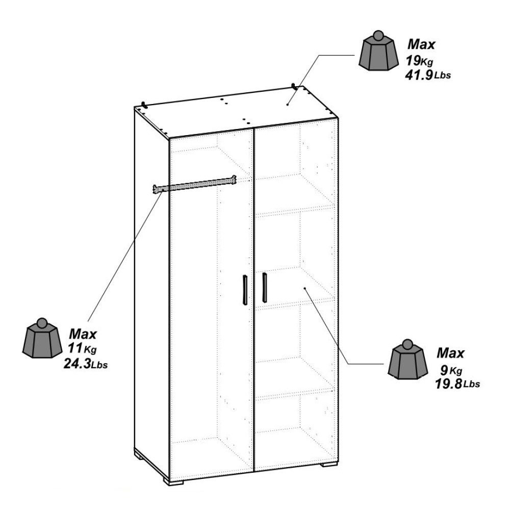 - Vrhnja plošča garderobe lahko zdrži do 19 kg