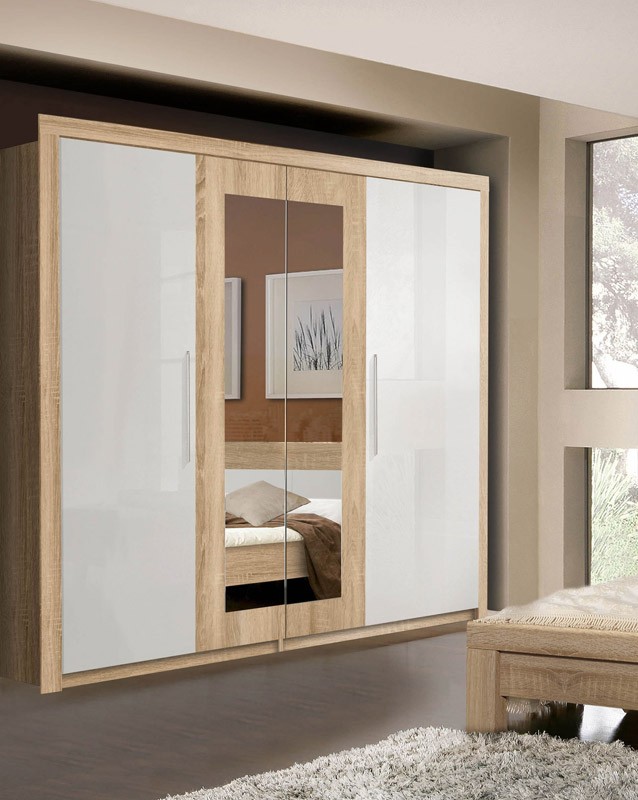 Velika garderobna omara Julietta uspešno estetsko združuje visoki sijaj, svetel les in ogledala. Garderobno omaro Julietta je moč kombinirati z ostalimi elementi iz linije pohištva Julietta (postelja, komoda, nočna omarica) in si sestavite spalnico po vaših željah. Omara vsebuje 6 polic in 1 drog za obešalnike.