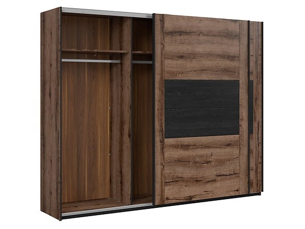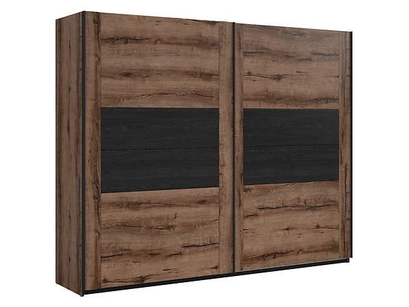 Garderobna omara z drsnimi vrati KASSEL nudi obešalni palici in polici kamor boste shranjevalni in obešali vaše stvari. Garderobna omara je modernega izgleda in na voljo v kombinaciji barve samostanskega hrasta in črnega hrasta.