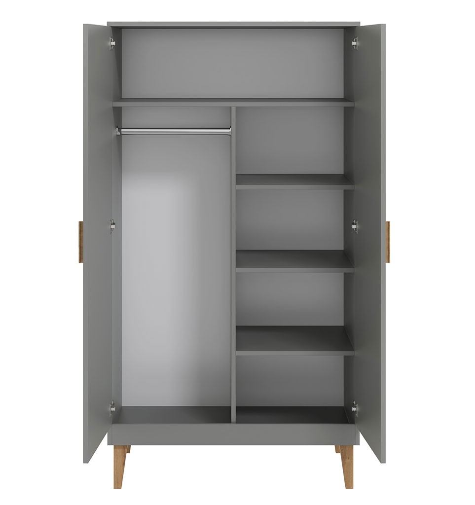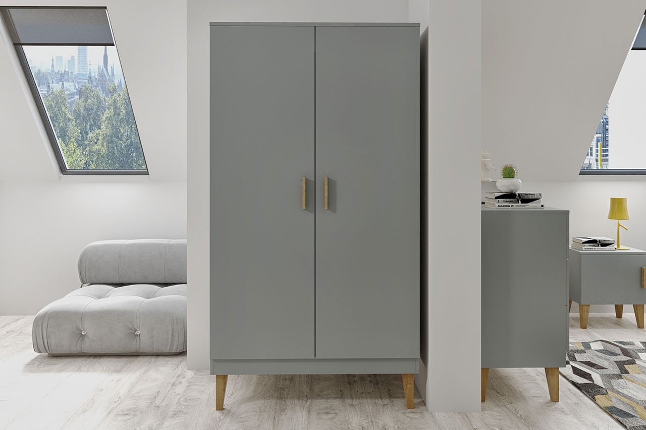Če potrebujete prikupno in funkcionalno garderobno omaro, ki ne zavzame veliko prostora ter se ponaša z modernim skandinavskim videzom potem je omara KELLY odlična izbira za vas. Omara se ponaša z modernim skandinavskim dizajnom, ki ustvari prijeten domač ambient v vašem domu. Na voljo je v beli ali sivi barvi, ki se enostavno kombinirata s katerokoli drugo barvo tako da se odlično podata v vsako otroško sobo.