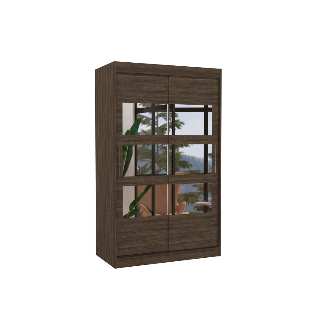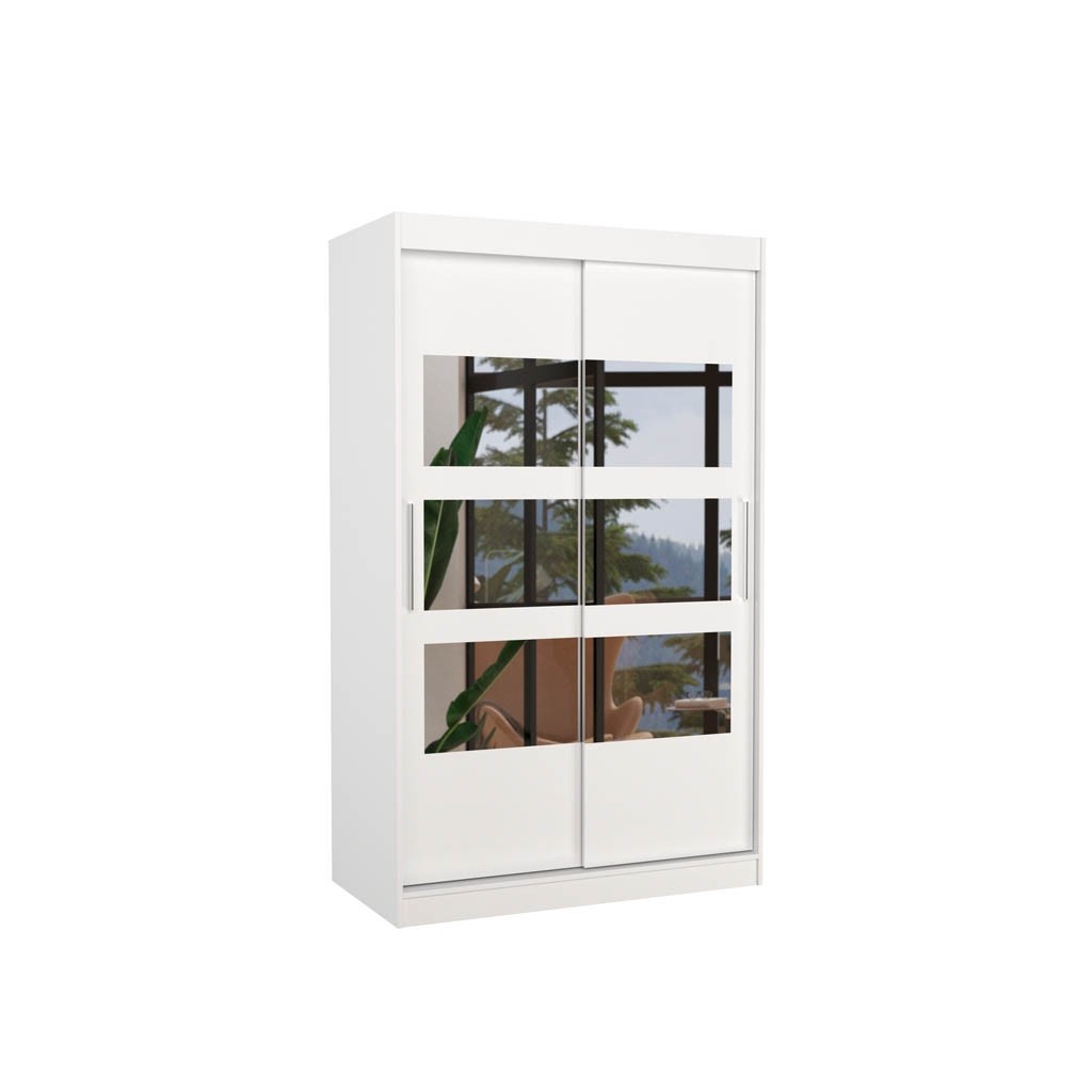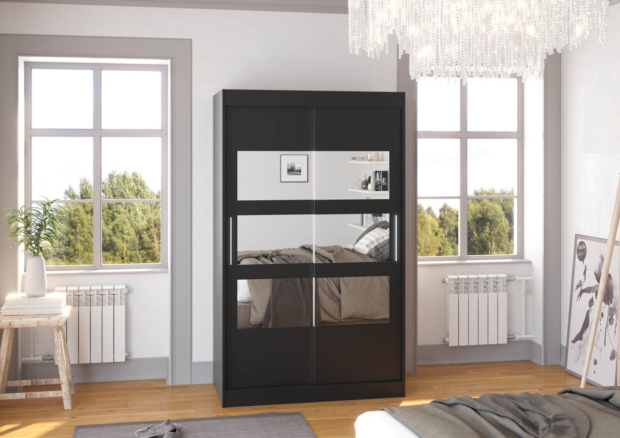 Garderobna omara KOLORADO je modernega izgleda, ki se lahko ponaša s tremi ogledali, ki so zloženi eden na drugega. V garderobni omari lahko najdete veliko polic, ki vam omogočajo shranjevalni prostor in pa obešalno palico na katero lahko obesite srajce ali večerne obleke.