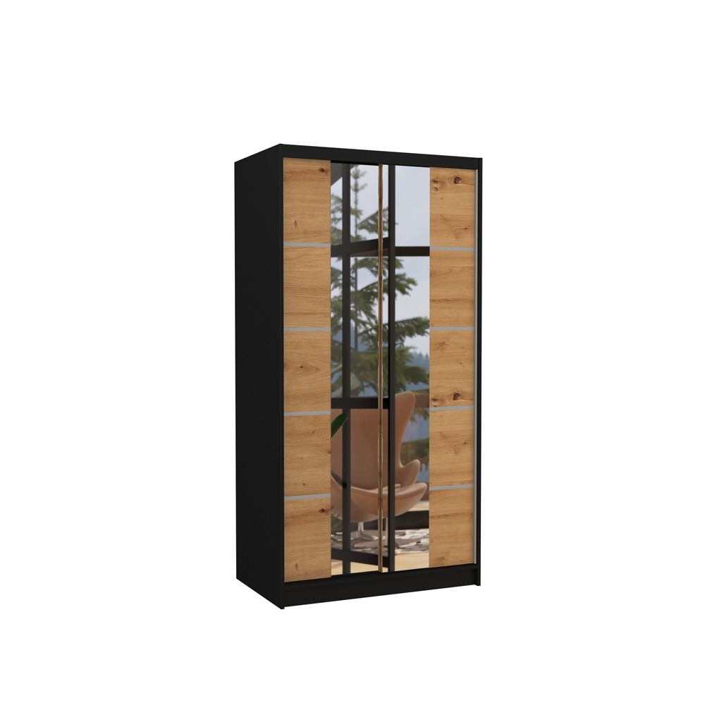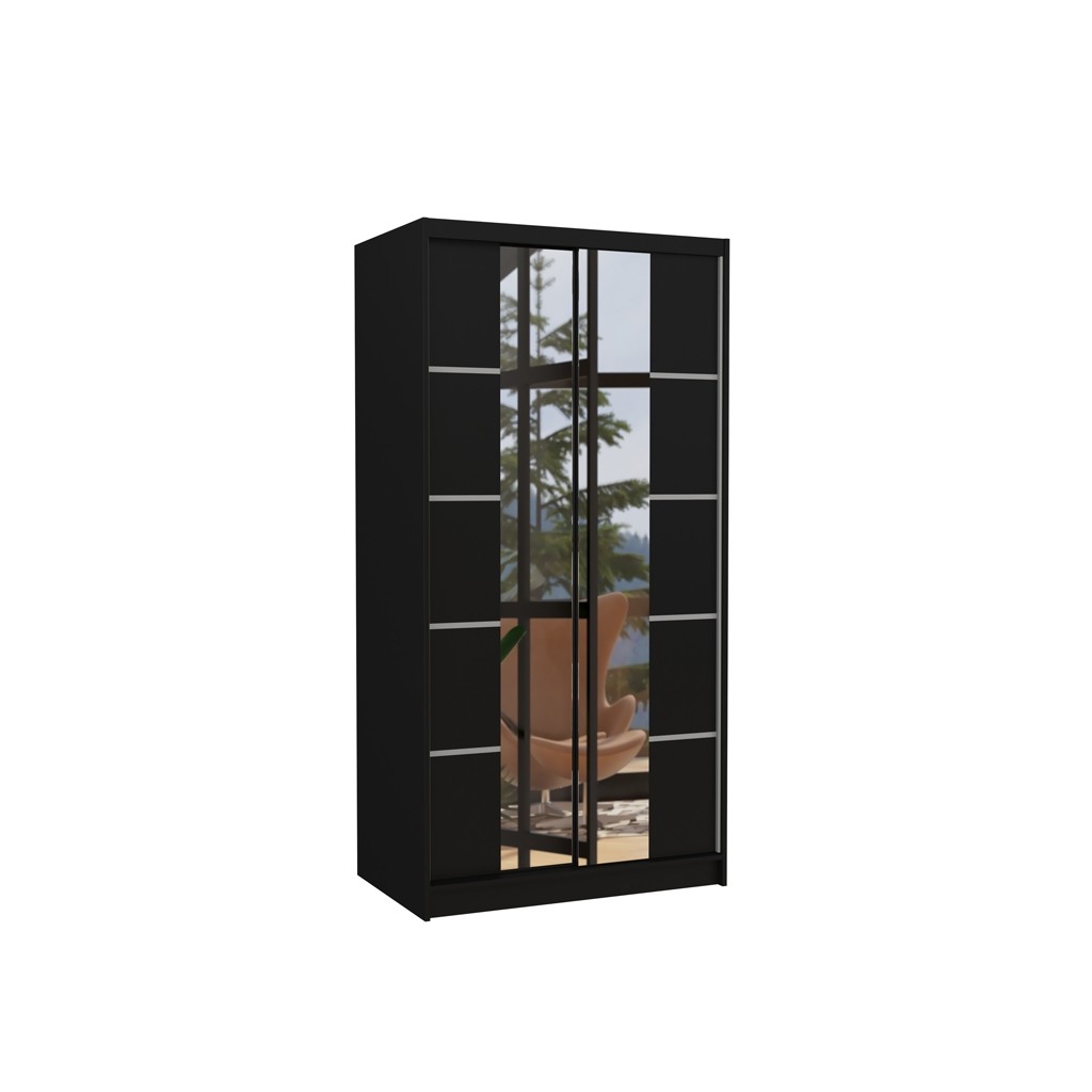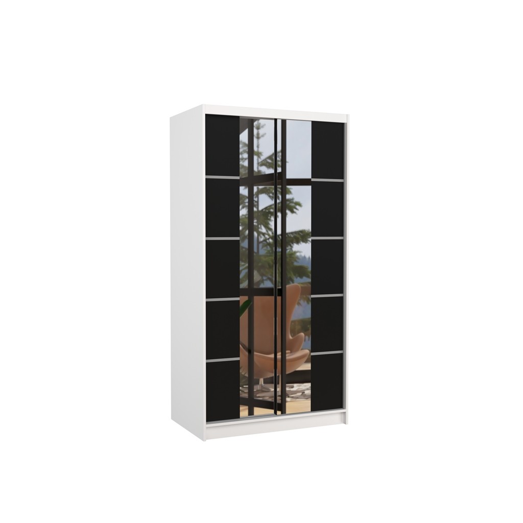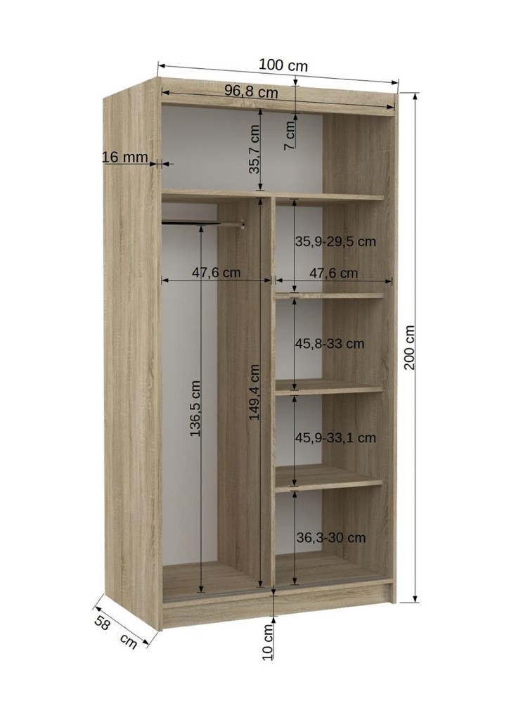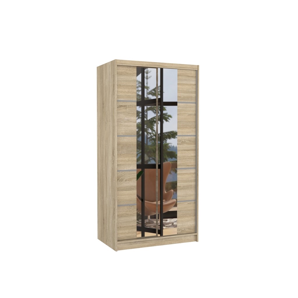 Omara z drsnimi vrati KSAWER 100 CM je popolna za tiste, ki želijo imeti popoln pregled nad svojim videzom. Z velikim ogledalom na sredini omogoča urejen videz pred odhodom od doma. Poleg tega je prostorna in dobro organizirana, kar omogoča enostavno shranjevanje in dostop do oblačil. Omara vsebuje 4 police in obešalno palico.