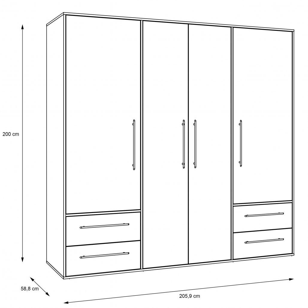 Garderobna omara MOKKARIS MKSS841 (bela) je prostorna in elegantna omara s štirimi vrati in predali, idealna za organizacijo vaših oblačil in dodatkov.