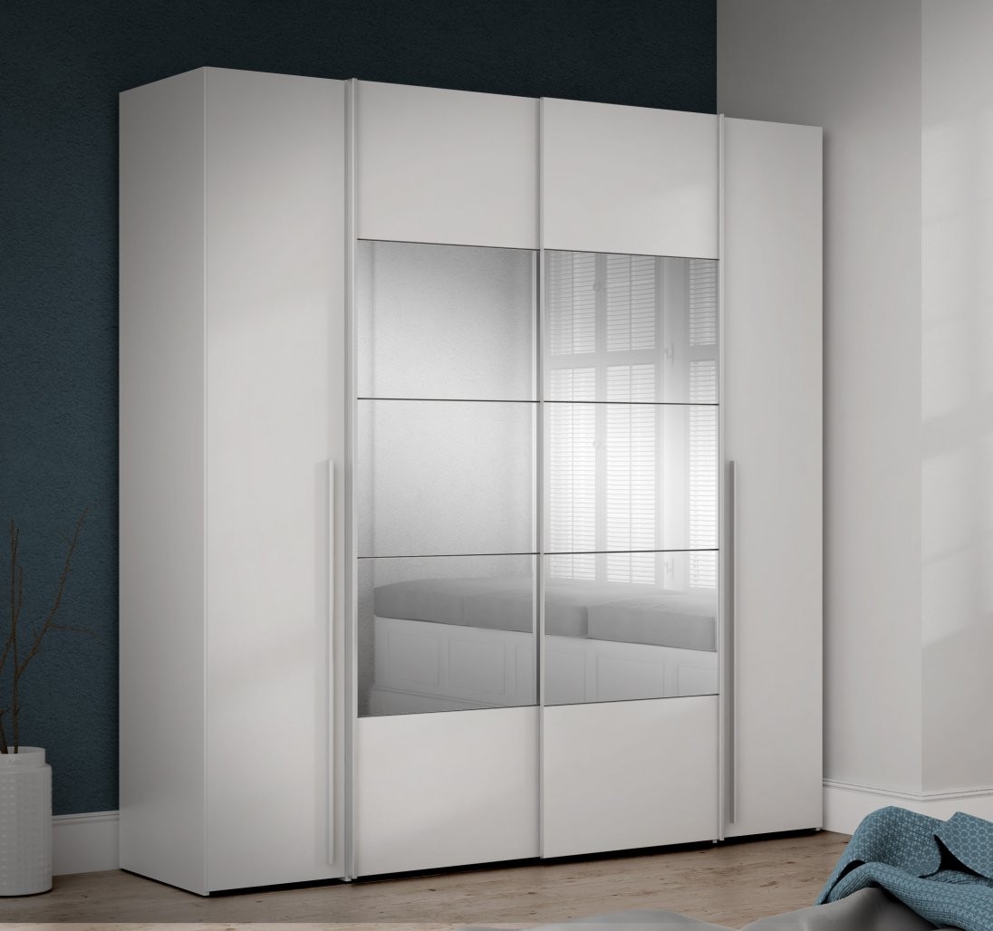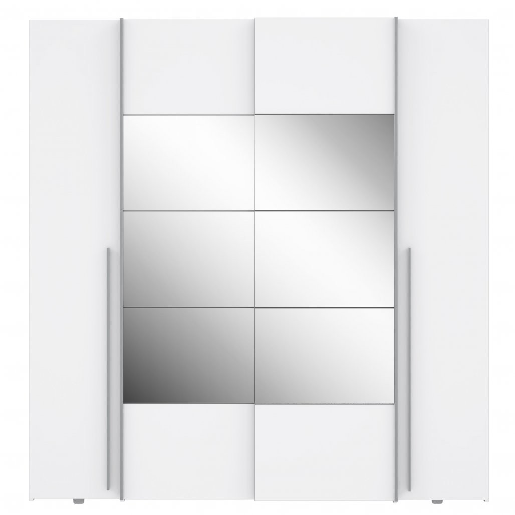 Garderobna omara NARAGO NRGS32512 (bela) je elegantna in prostorna omara s štirimi oddelki, ogledalom na vratih in kakovostnim materialom. Idealna za vaš dom!