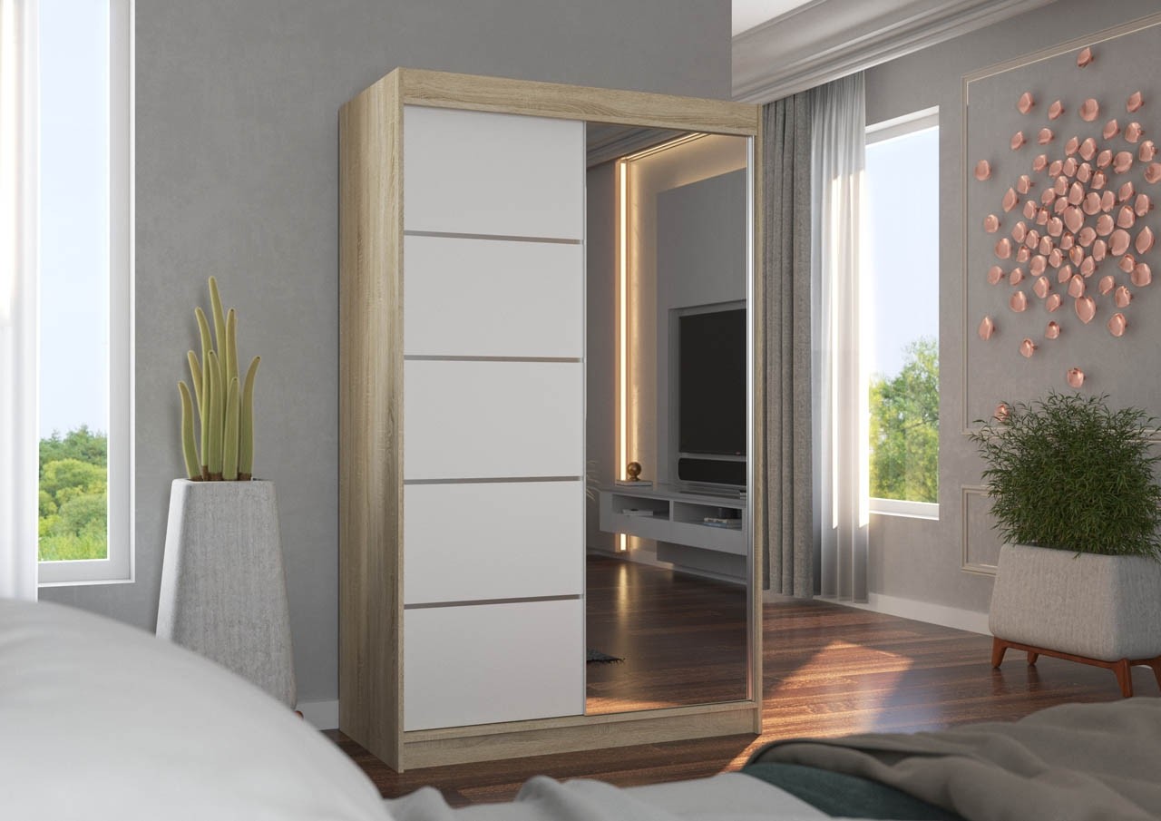 Garderobna omara NICEA je moderna omara z veliko shranjevalnega prostora, saj nudi police na kateri lahko pospravite vaša oblačila. Vsebuje tudi obešalno palico, ki je namenjena obešanju srajc ali večernih oblek. Garderobna omara je na voljo v več barvah.