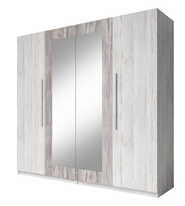 Garderobna omara VERA (svetel siv bor-temen siv bor) bo poskrbela, da bodo vaša oblačila vedno na pravem mestu in skrbno pospravljena. Je 4-delna omara, ki ima v sredinskem delu nameščeno tudi ogledalo.