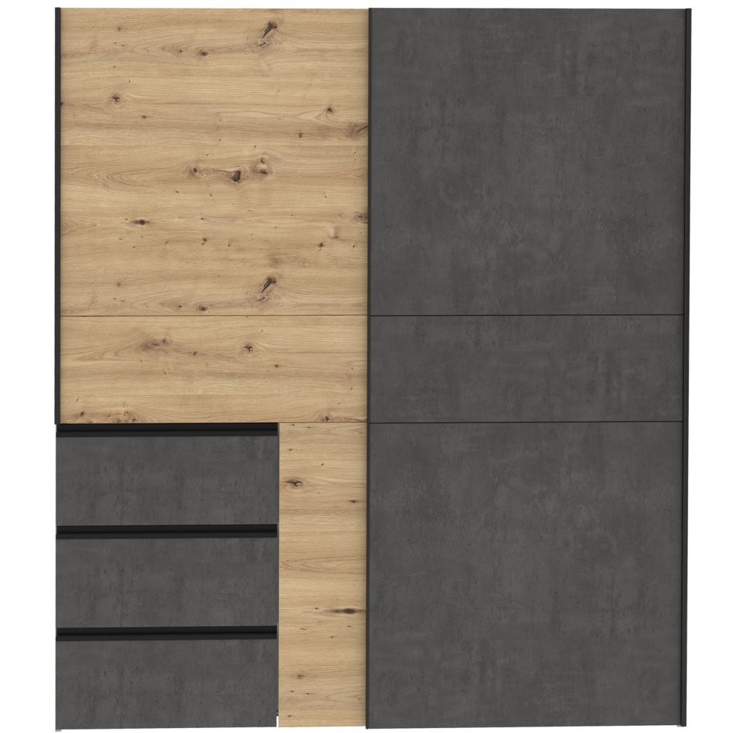 Garderobna omara WINN 2 W2QS823E71 (hrast/temno siva) je popolna izbira za vašo spalnico s sodobnim dizajnom in praktičnimi drsnimi vrati.