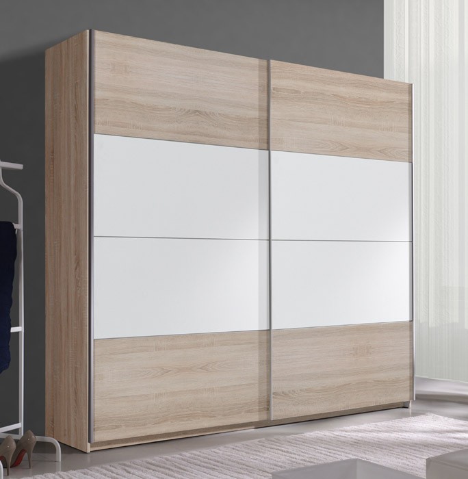 Omara z drsnimi vrati Beta (sonoma hrast-bela) je na voljo v dimenziji 220 cm. Omara Beta vam bo pomagala rešiti problem pri shranjevanju , saj nudi več kot dovolj prostora za vsa vaša oblačila. Notranji del omare je razdeljen na dva dela. Ena polovica vsebuje polico in drog za obešanje, druga polovica pa 4 praktične police.