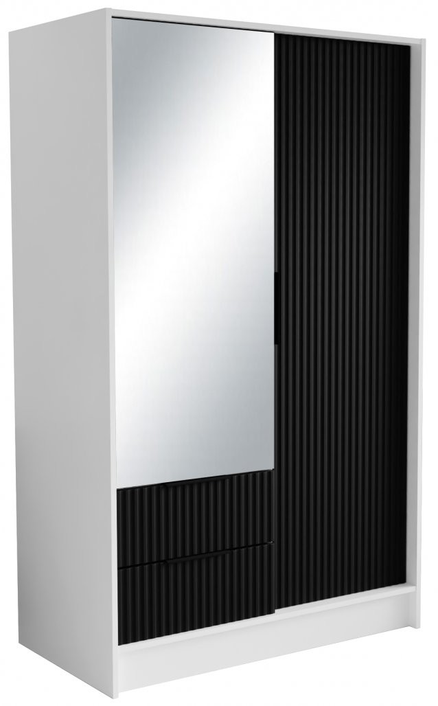 Garderobna omara z ogledalom Norel 101 cm je elegantna in sodobna rešitev za shranjevanje vaših oblačil in dodatkov. Z valovito strukturo in velikim ogledalom doda prostoru globino in funkcionalnost. Omara je na voljo v več barvnih kombinacijah in dimenzijah, kar omogoča popolno prilagoditev vašim željam.