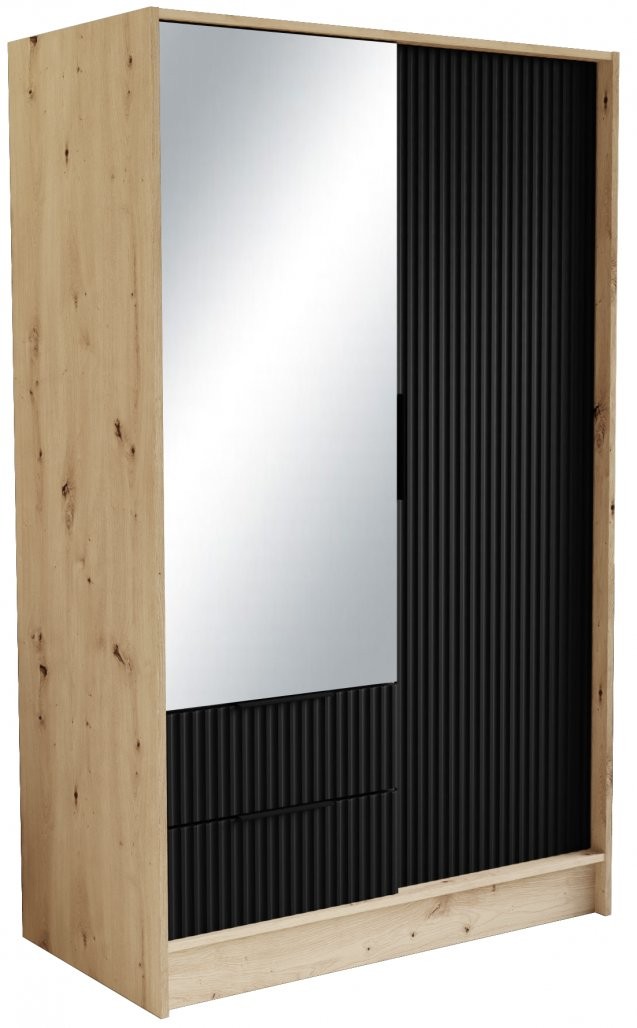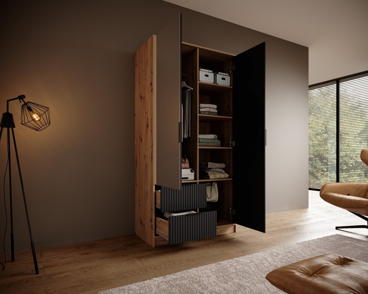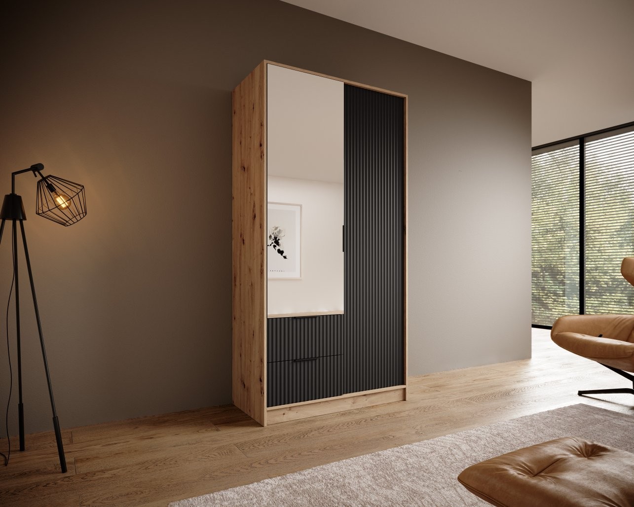 Garderobna omara z ogledalom Norel 101 cm - HRAST ARTISAN-ČRNA