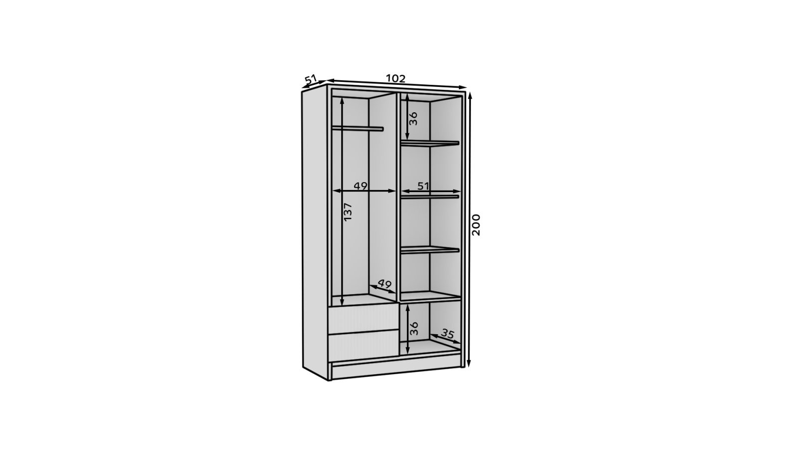 • Dimenzije: Višina 200 cm, globina 51 cm, širine: 101 cm