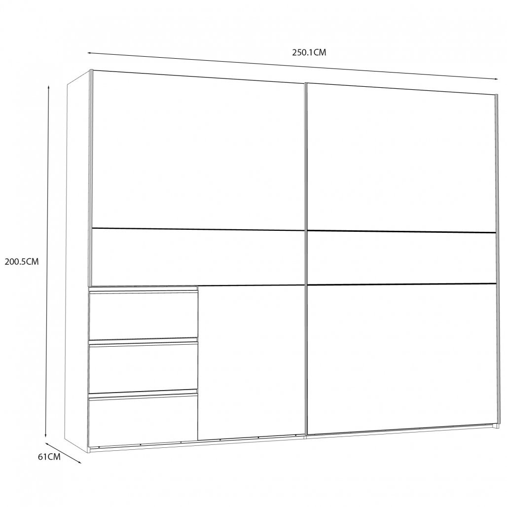 - Široka dvodelna garderobna omara z drsnimi vrati, primerna za spalnice, predsobe, dnevne sobe.
