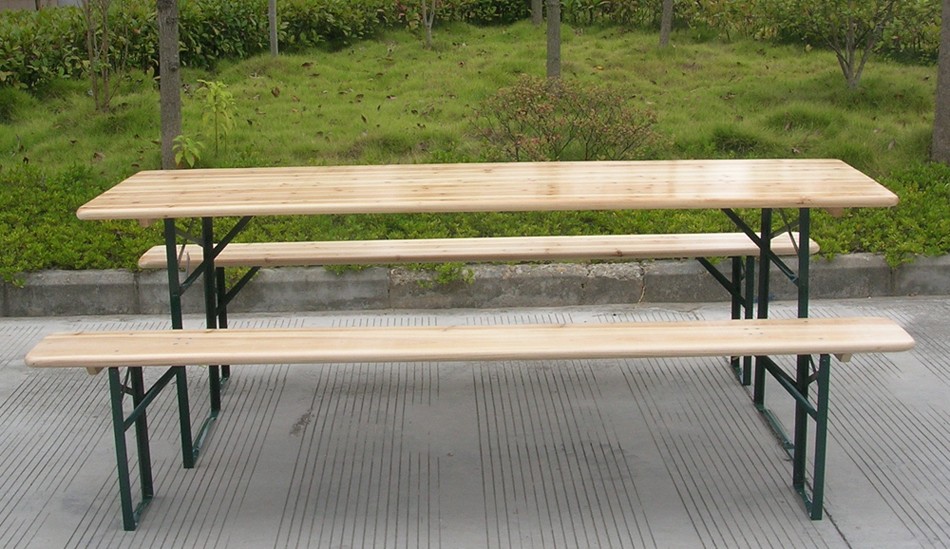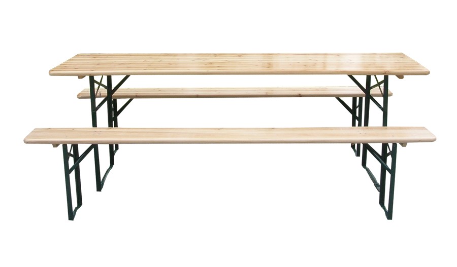 Gasilska garnitura OREGON je v natur barvi in je iz lesa. Ogrodje je kovinsko, v zeleni barvi. Je izjemno stabilna in vzdržljiva garnitura.