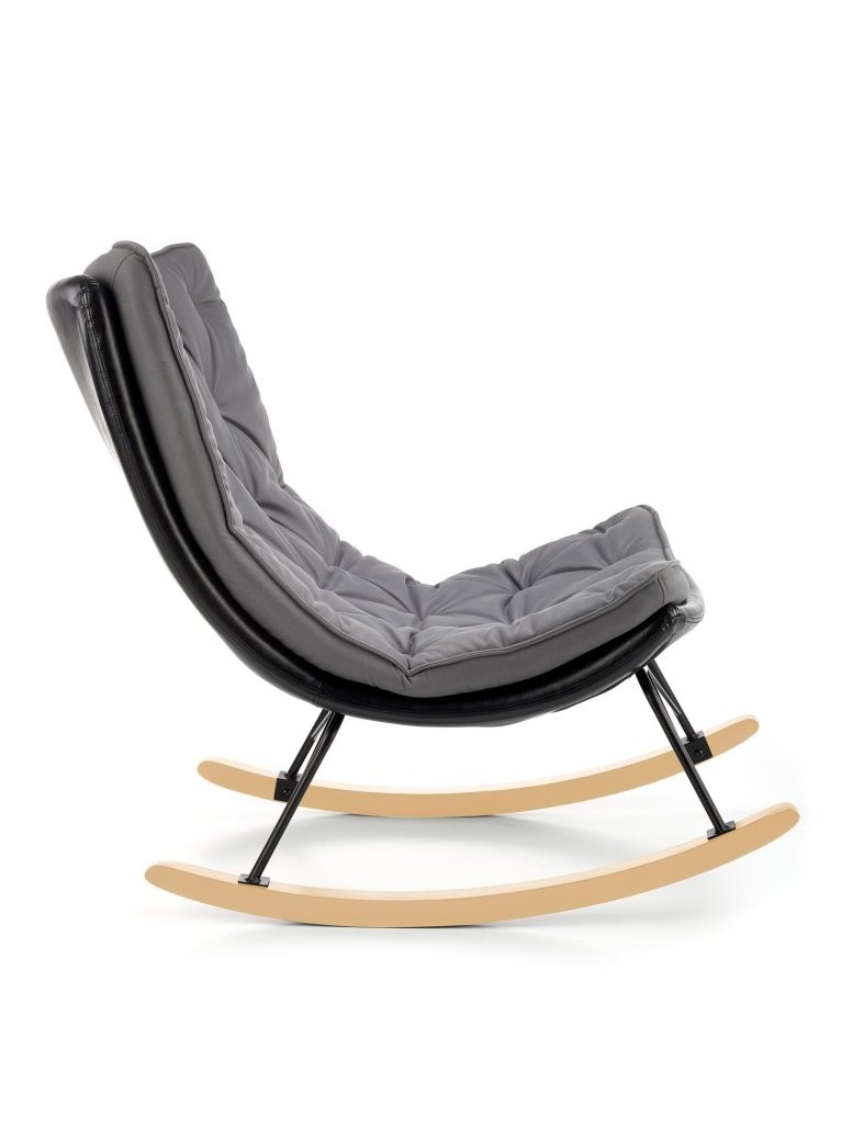 Gugalnik Laron v kombinaciji temno sive umetne usnje in lesa prinaša skandinavski in boho slog v prostor. Njegova kovinska konstrukcija omogoča trpežnost, dodatna funkcija zibanja pa nudi sproščanje v vsakem kotičku doma.
