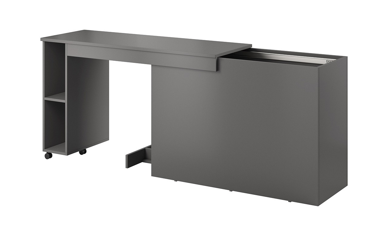 Izjemno praktična in funkcionalna izvlečna miza TOMI je odlična izbira za vse manjše otroške sobe, v katerih primanjkuje prostora. Ko je miza skrbno pospravljena za posteljo vam služi kot polica, raztegnjena pa otroku nudi veliko delovno površino, izvlečno polico za šolsko torbo ter dve odprti polici na kateri lahko otrok pospravi svoje šolske potrebščine!