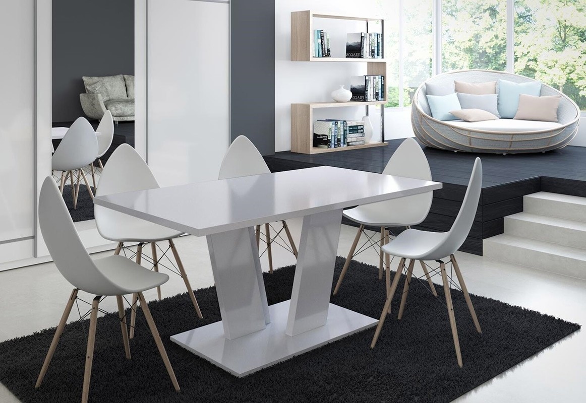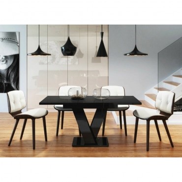 Čudovita in moderna jedilna miza je na voljo v črni ali beli barvi visokega sijaja. Njen estetski izgled vam omogoča, da to mizo lahko postavite v katerikoli jedilni prostor, ker miza preprosto navdušuje in dela prostor bolj čist in umirjen. Podnožje je narejeno iz dveh stebrov, ki se križata. Maksimalna nosilnost je 20 kg.
