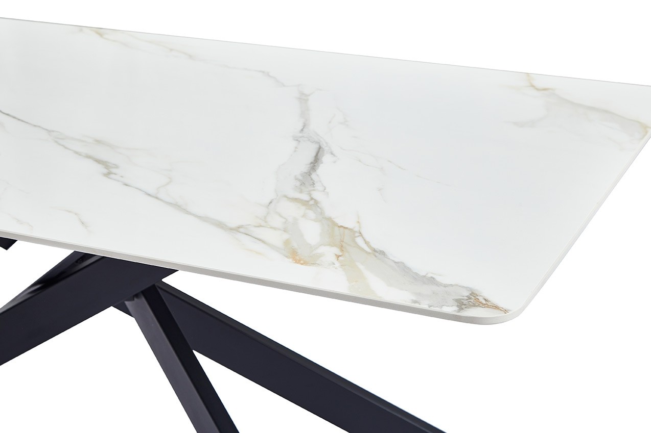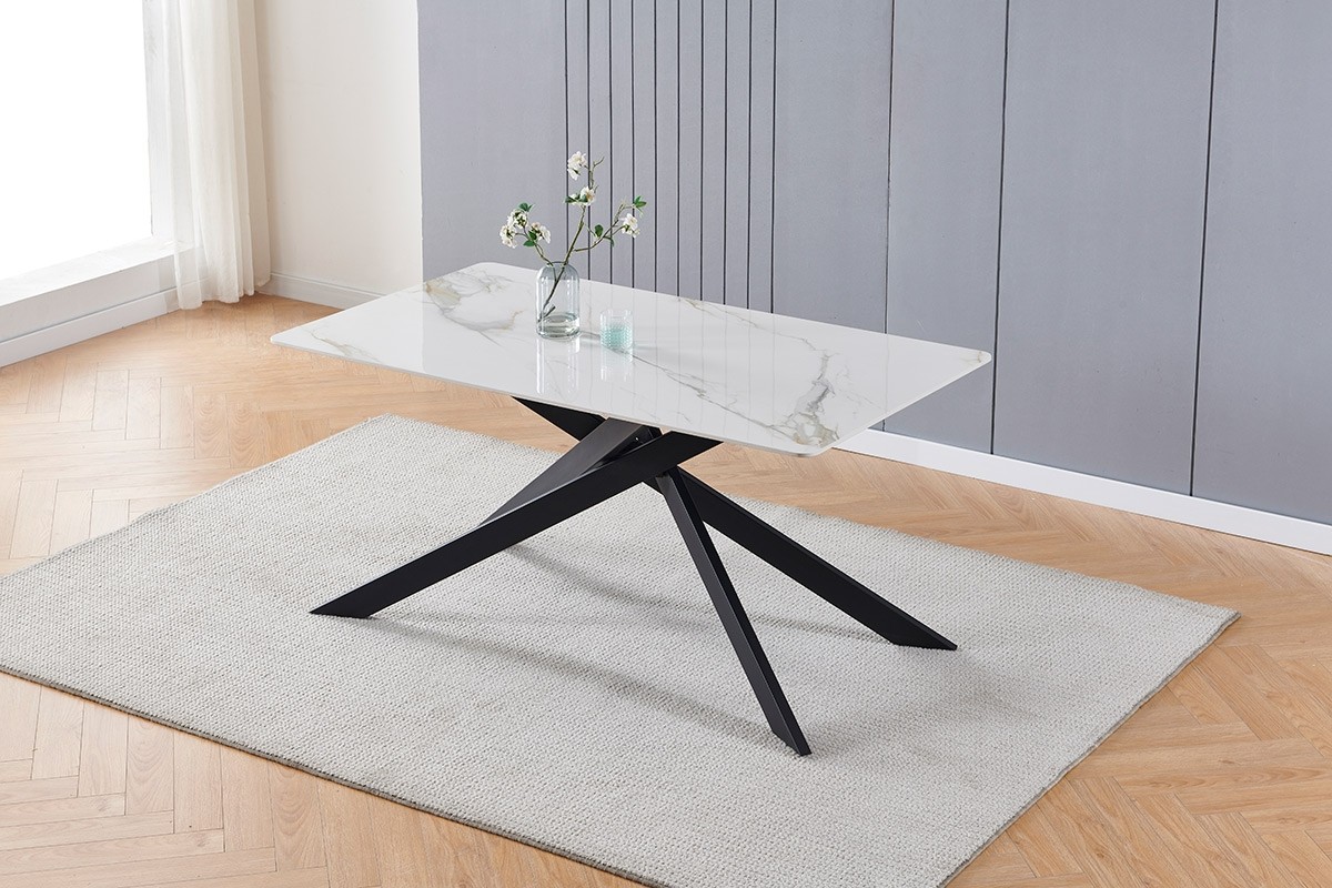 Čudovita in elegantna miza MARIGOLD 2 je na voljo v barvi belega marmorja s pridihom zlata. Miza je odličen nakup za vsakega, ki si želi moderne jedilne mize, ki poživi vaš prostor. Miza je odporna pa vročino in mraz, saj je izdelana iz kvalitetnega sintranega kamna. Sintrani kamen je bolj kvaliteten od navadne keramike in tudi težko lomljiv. Noge so elegantno prepletene in narejene iz kovinskih cevi, ki so prelakirane v črno za boljšo zaščito. Maksimalna obremenitev je 120 kg.