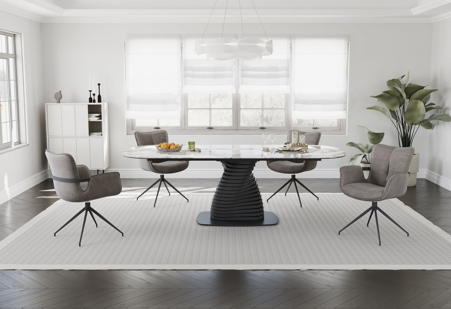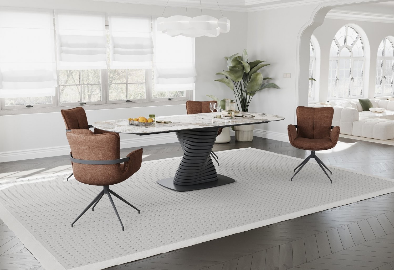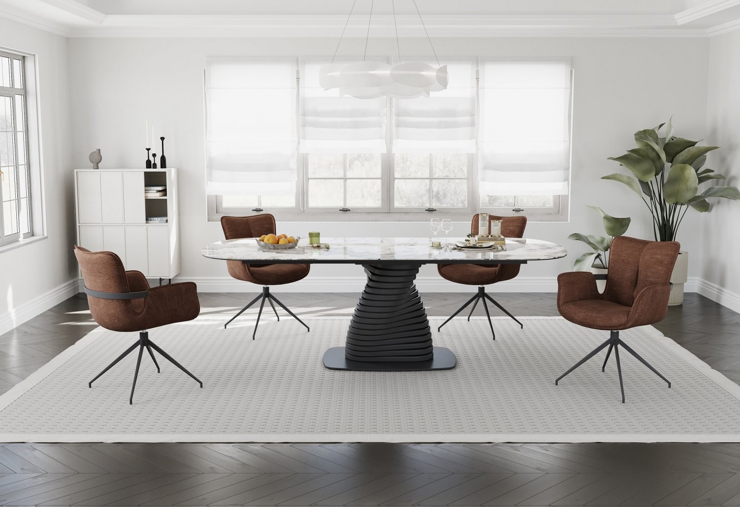 Jedilna miza SANAS (rjavi marmor) je elegantna in prostorna miza, ki bo s svojim sodobnim videzom in kakovostnimi materiali popestrila vsak jedilni prostor.