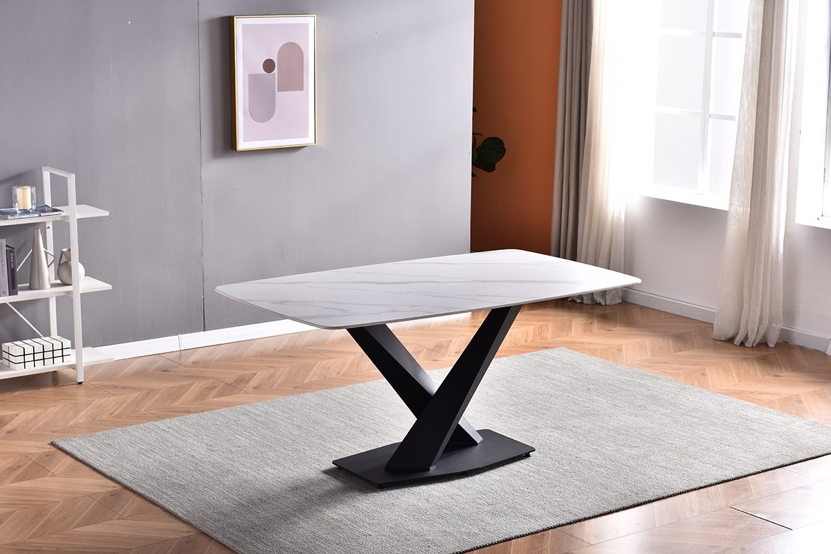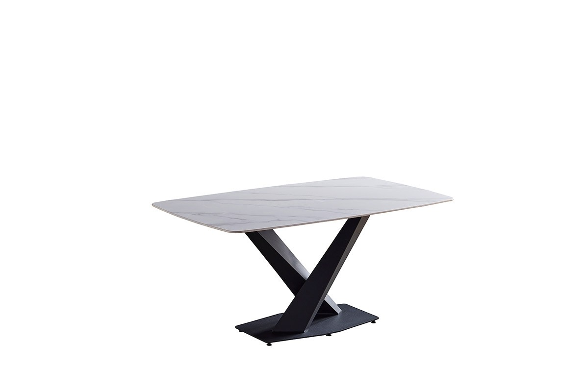 Prekrasna jedilna miza SIRIJ združuje sodoben stil s klasičnim videzom in bo kot ulita za vsak jedilni prostor. Na voljo je v barvi belega marmorja. Miza je narejena iz kvalitetnega sintranega kamna, ki je kvalitetnejši od navadne keramike in zato tudi težje lomljiv. Dodatna prednost tega materiala je pa odpor na vročino in mraz, tako da ne boste nikoli v skrbeh, da bi se kak delček mize uničil. Noge so kovinske in izdelane v posebni obliki dveh stebrov, ki mizi dajeta stabilnost. Maksimalna obremenitev je 120 kg.