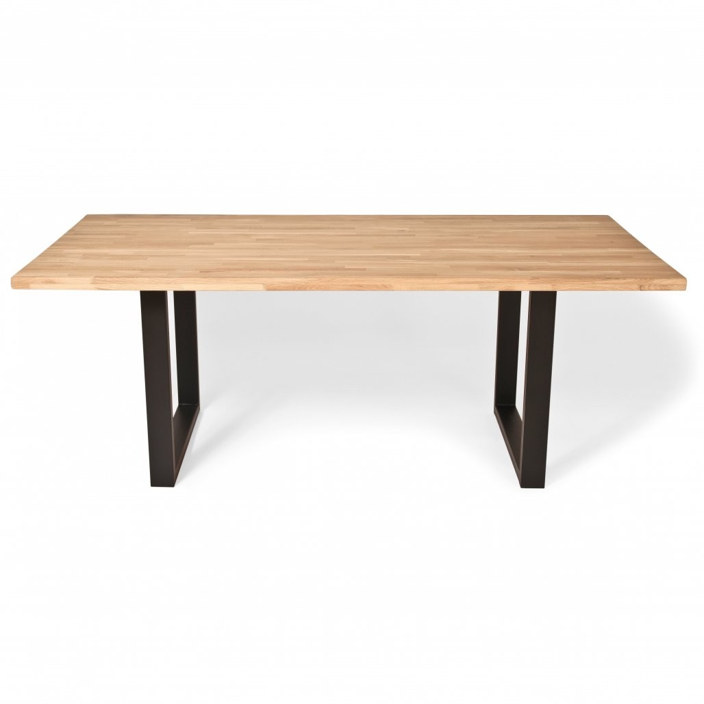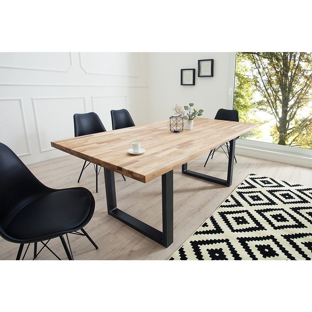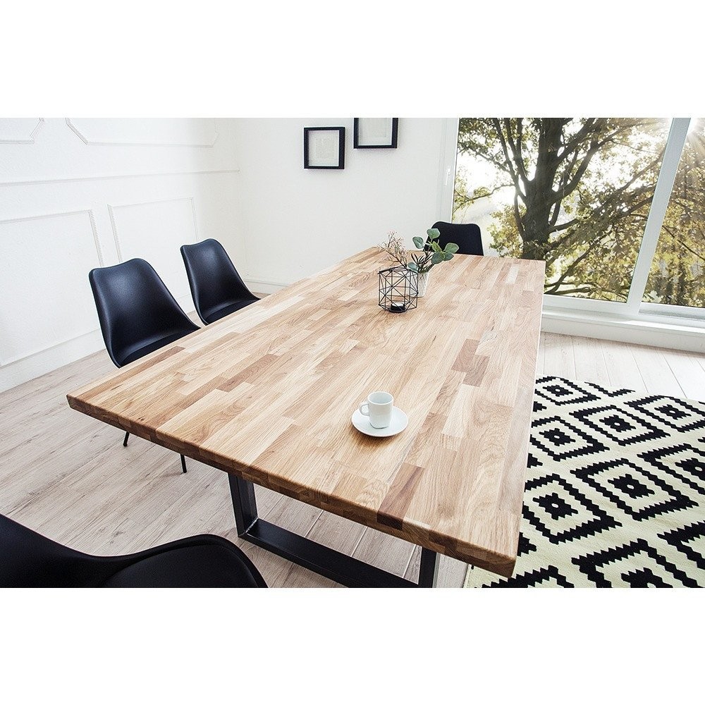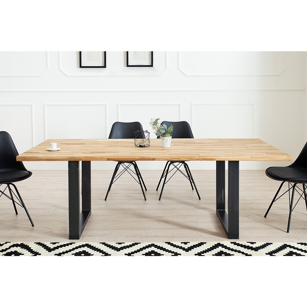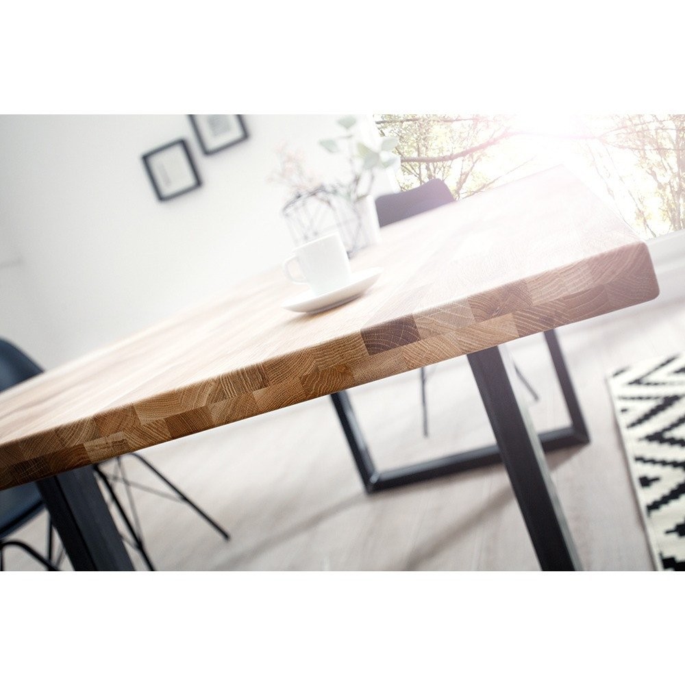 Predstavljamo veliko, elegantno jedilno mizo, ki združuje visokokakovosten, masivni hrastov les z industrijsko trdnostjo kovine in ustvari središče vaše jedilnice