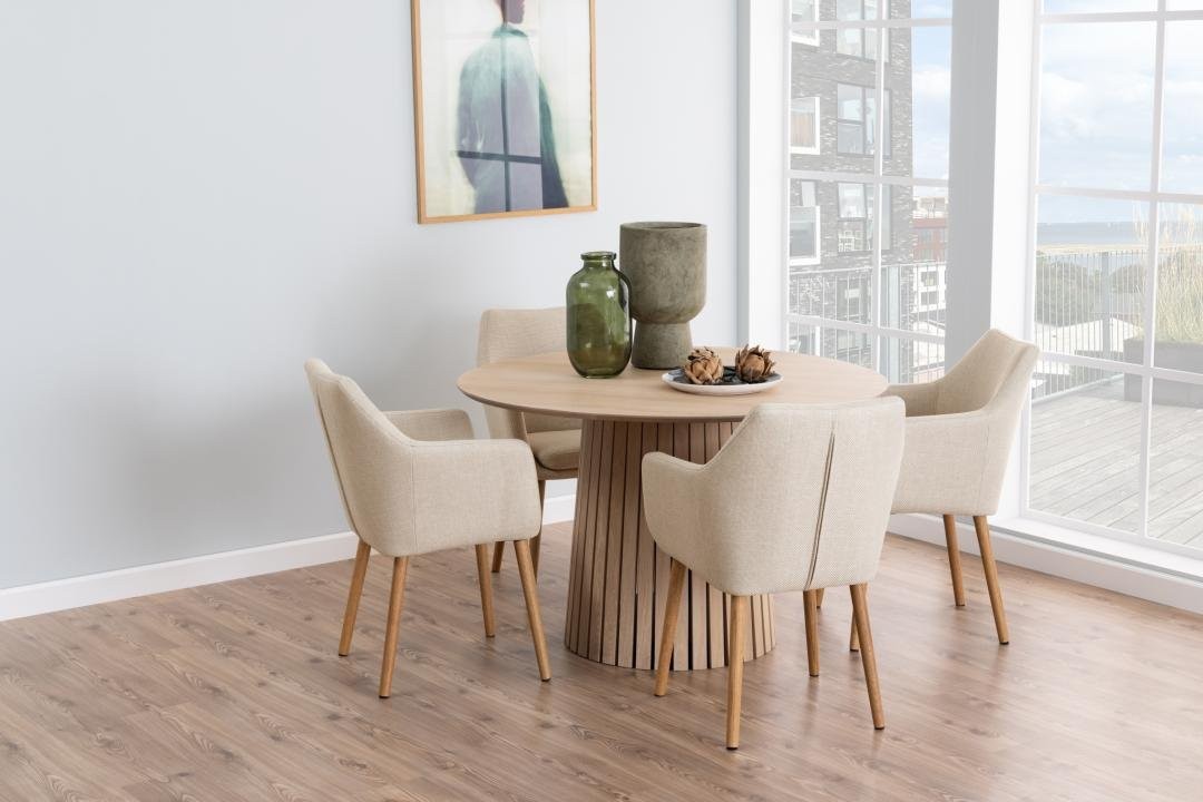 Spoznajte sodobno jedilno mizo TITUS, ki je narejena v skandinavskem stilu. Prostorna zgornja površina omogoča obilo prostora za druženje z družino ali prijatelji in je kombinirana s trdno, stožčasto oblikovano osnovo, ki je obogatena z estetskimi letvicami.