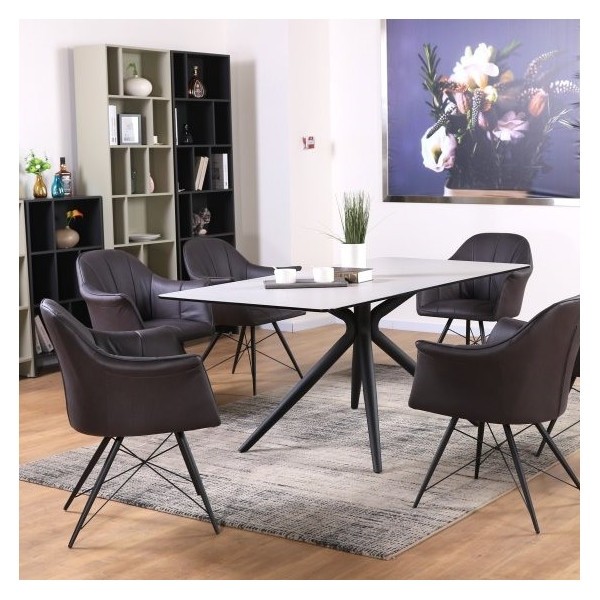 Jedilna miza VIENNA je moderna jedilna miza. Mizna plošča je iz MDF materiala v beli barvi. Podnožje je črno.