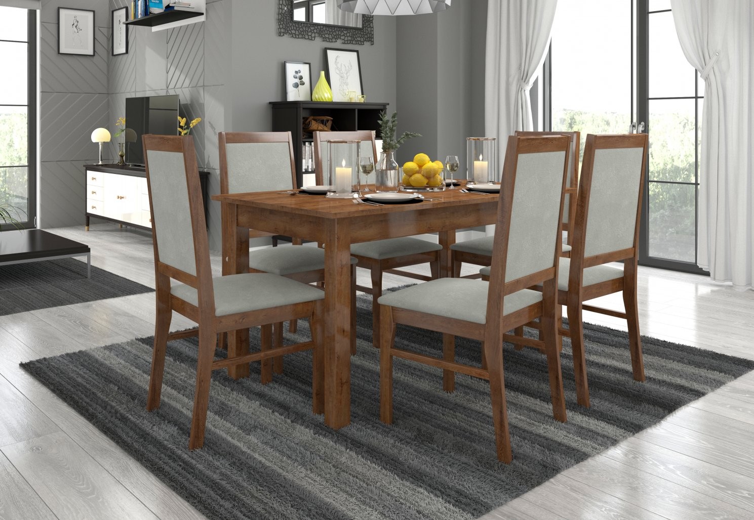 Jedilni komplet RODOS 25 je popolna izbira za vsak dom, ki ceni udobje in eleganco. S svojo klasično, a sodobno zasnovo bo popestril vsako jedilnico ter omogočil prijetno druženje ob obrokih.