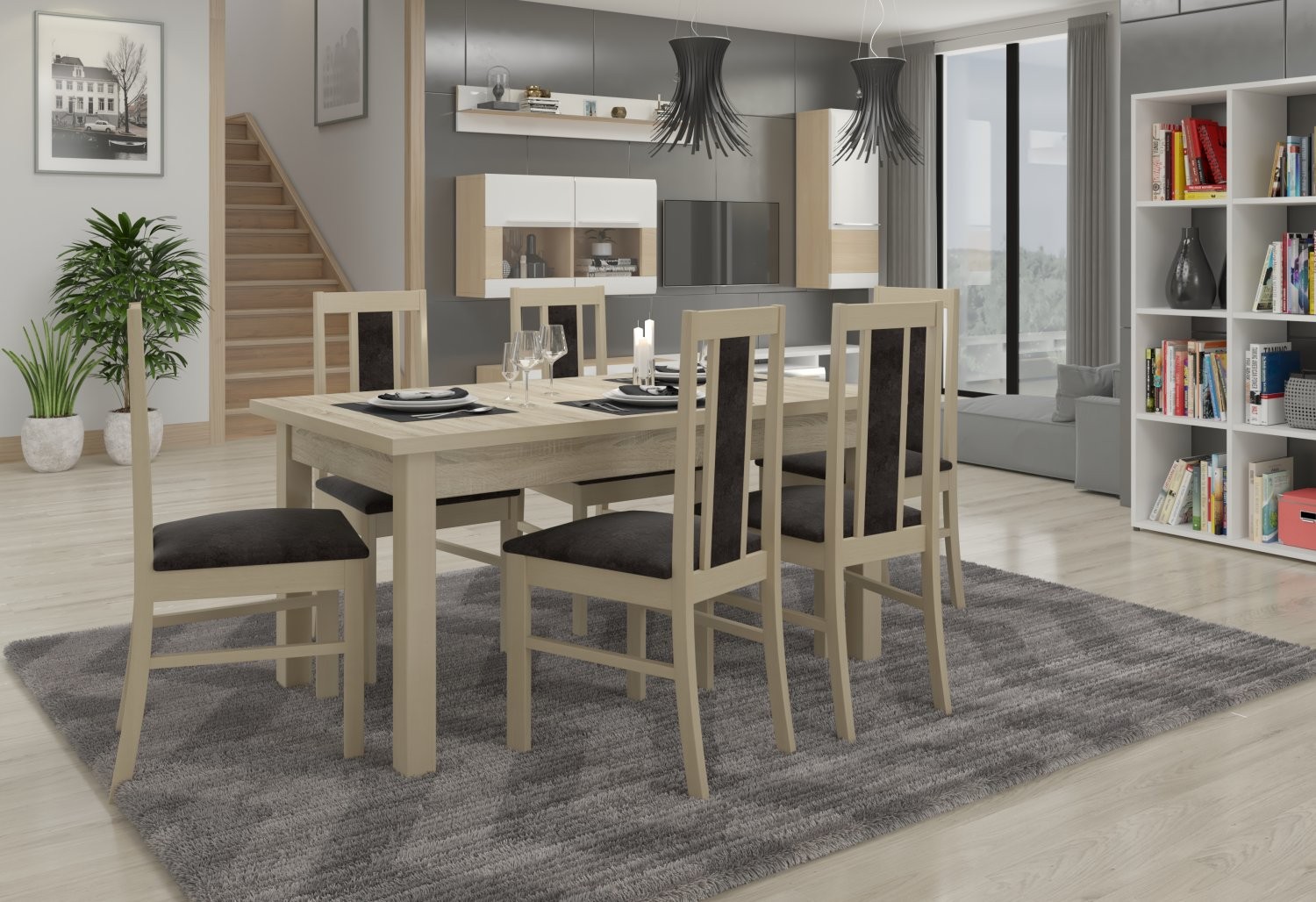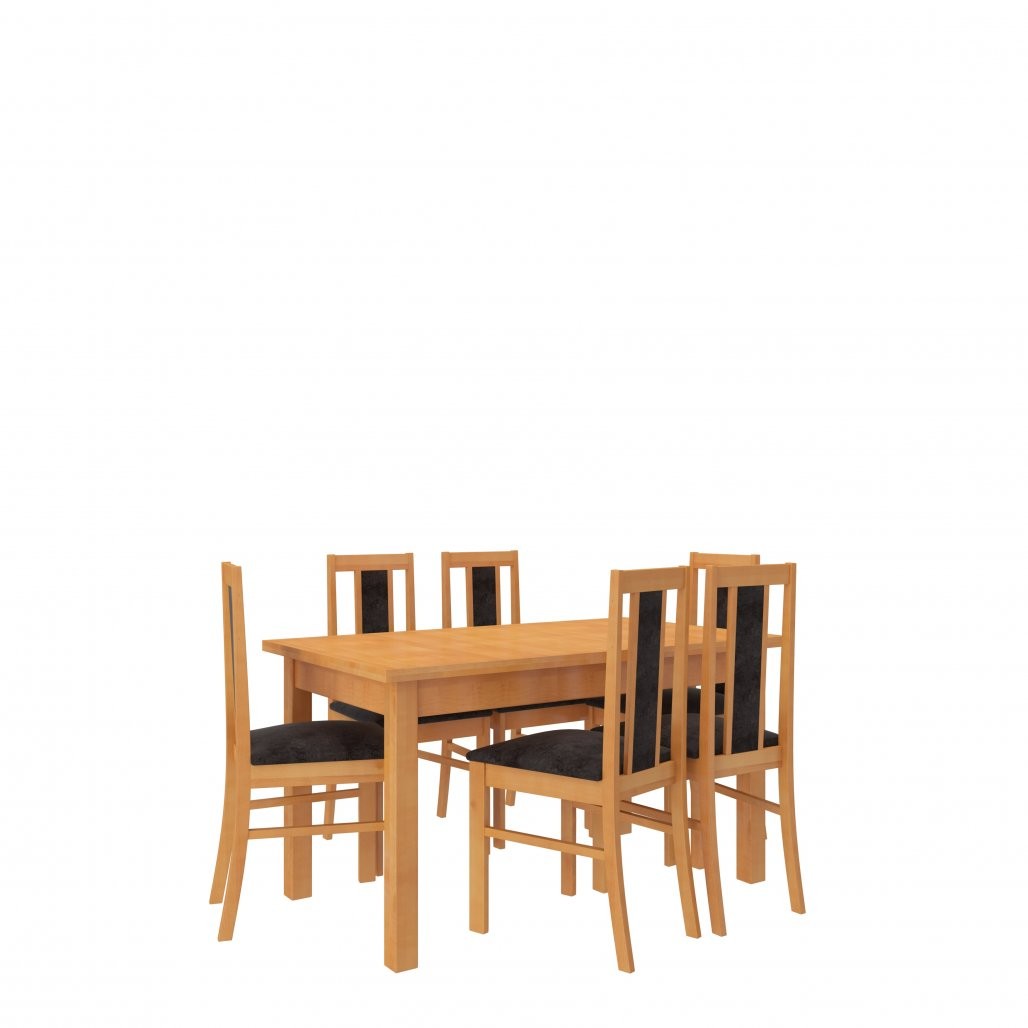 Komplet vključuje trdno mizo in šest udobnih stolov, ki omogočajo prijetno druženje ob obrokih. Miza je raztegljiva in omogoča udobno namestitev za 6 oseb.