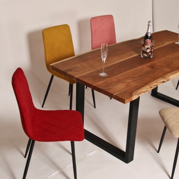 Jedilni stol ALIDA s klasičnimi nogicami je stabilen in udoben stol, ki je na voljo v kar šestih različnih barvah. Sedišče in hrbtišče imata dekorativne šive v obliki rombov, ki še dodatno izboljšajo videz stola. Mehka tkanina vam omogoča udobno sedenje v vseh letnih časih, saj vas pozimi greje, poleti pa koži omogoča da diha in se ne poti.