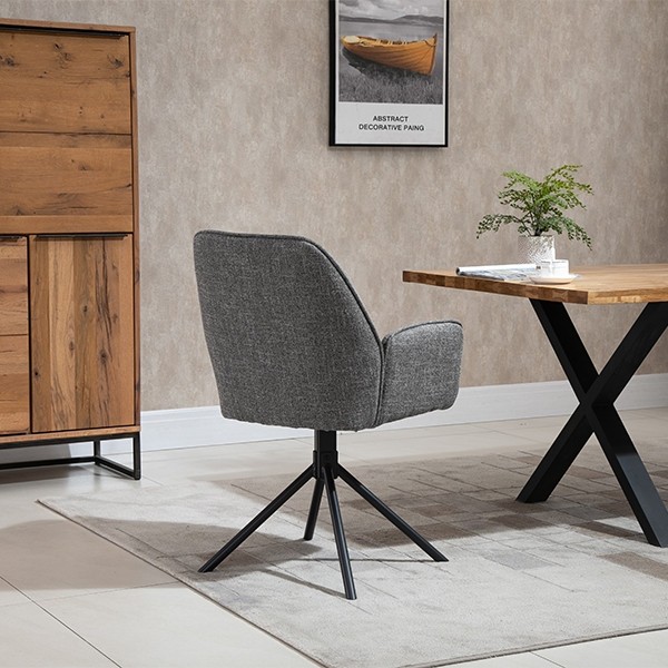 JEDILNI STOL ANDRE je moderen jedilniški stol z oblazinjenim hrbtiščem in sediščem, ki nudi maksimalno udobje med sedenjem. Kvalitetna tkanina v univerzalnih barvah, ter stilski rokonasloni bodo sigurno popestrili vsako jedilnico. Podnožje je kovinsko in prašno lakirano v črno barvo.