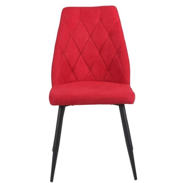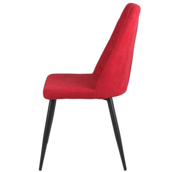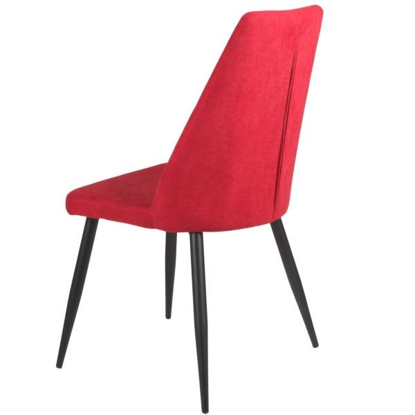 Jedilni stol ESME se ponaša z elegantnim dizajnom, katerega še dodatno izpopolnjujejo dekorativni šivi na notranji strani hrbtišča. Stol je v celoti oblazinjen v mehko tkanino, ki je na voljo v rdeči, taupe in sivi barvi in katera vam nudi udobno sedenje v vseh letnih časih. Stol ima štiri klasične nogice v elegantni črni barvi, ki omočajo stolu da je stabilen in ima nosilnost do 120 kg.