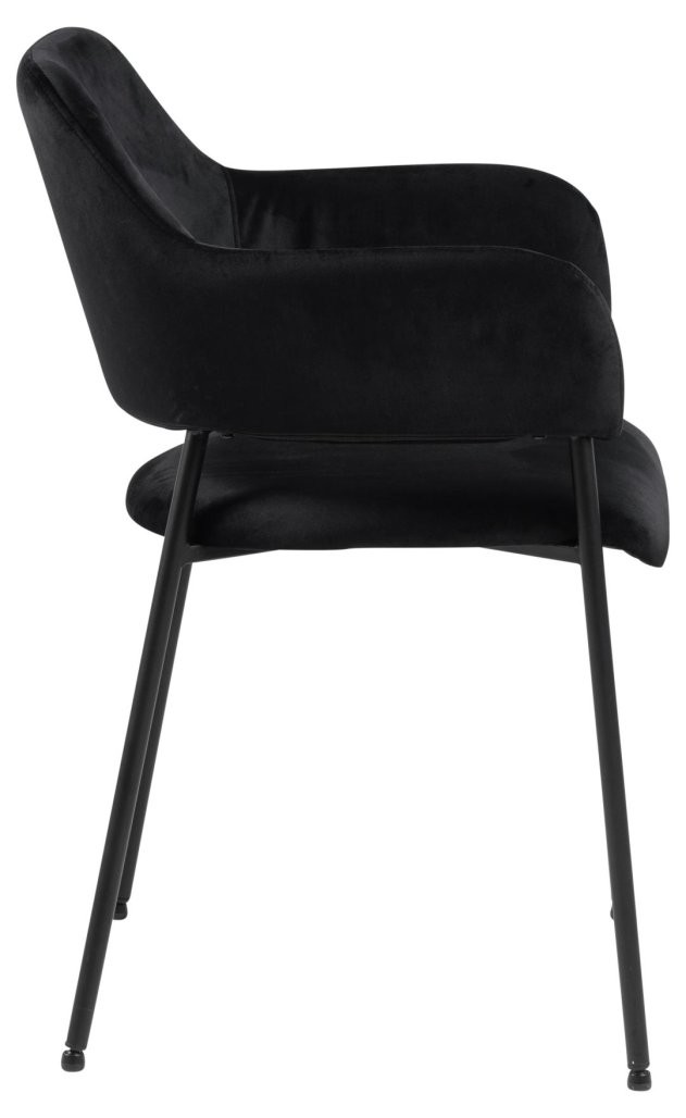 S subtilno ukrivljeno obliko vas ta jedilni stol HELLE v črni barvi objame in vam omogoča,da je čas za jedilno mizo preživet zares udobno. Žametno oblazinjen sedež z naslonjali za roke je povezan s črnim prašno barvanim kovinskim ogrodjem, ki doda estetskemu izgledu.
