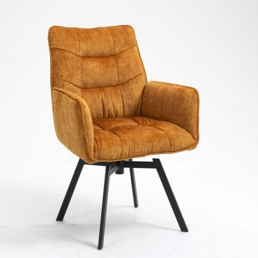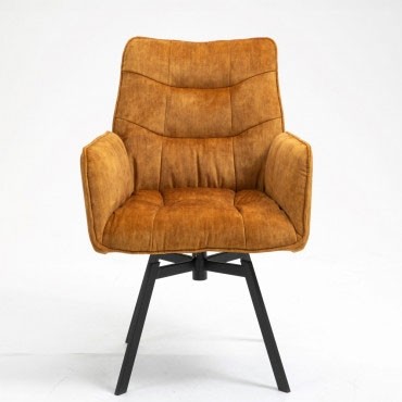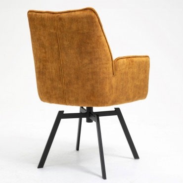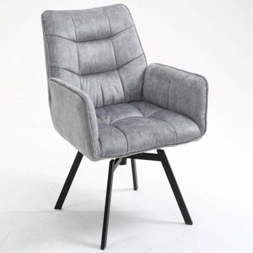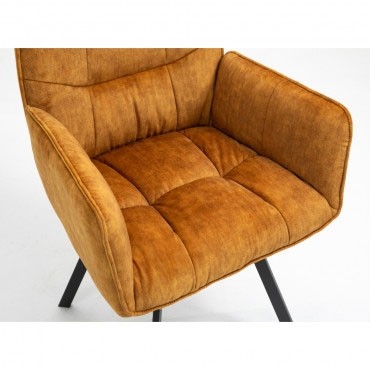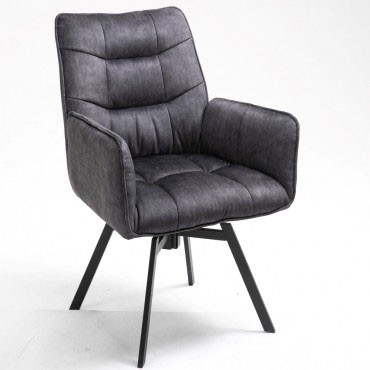 Udoben jedilniški stol KANDY nudi oblazinjen sedež, hrbtišče in rokonaslone za boljše in večje udobje. Hrbtišče je prešito z okrasnimi šivi, ki dodajo estetskemu izgledu vašega stola. Sedišče je na višini 46 cm, okvir stola je izdelan s kovine, nogice so pa prašno lakirane v črno barvo za boljšo zaščito.
