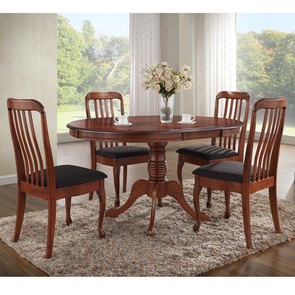 Jedilni stol LEDINA je oblazinjen jedilniški stol rustikalnega videza. Jedilni stol je v barvi mahagonija. Narejen iz masivnega lesa. Poglejte si še mizo iz tega programa.