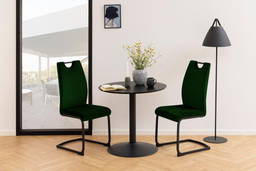 Moderen jedilni stol LYRA z nihajno osnovo vam prinaša udobje in in moderen slog hkrati. Sedišče in hrbtišče sta narejena iz mehke, udobne tkanine, ki daje bogat občutek. Stol je enostaven za premikanje, saj ga lahko primete za ročico na vrhu stola in si s tem olajšate delo pri pospravljanju. Minimalno naročilo: dva kosa.