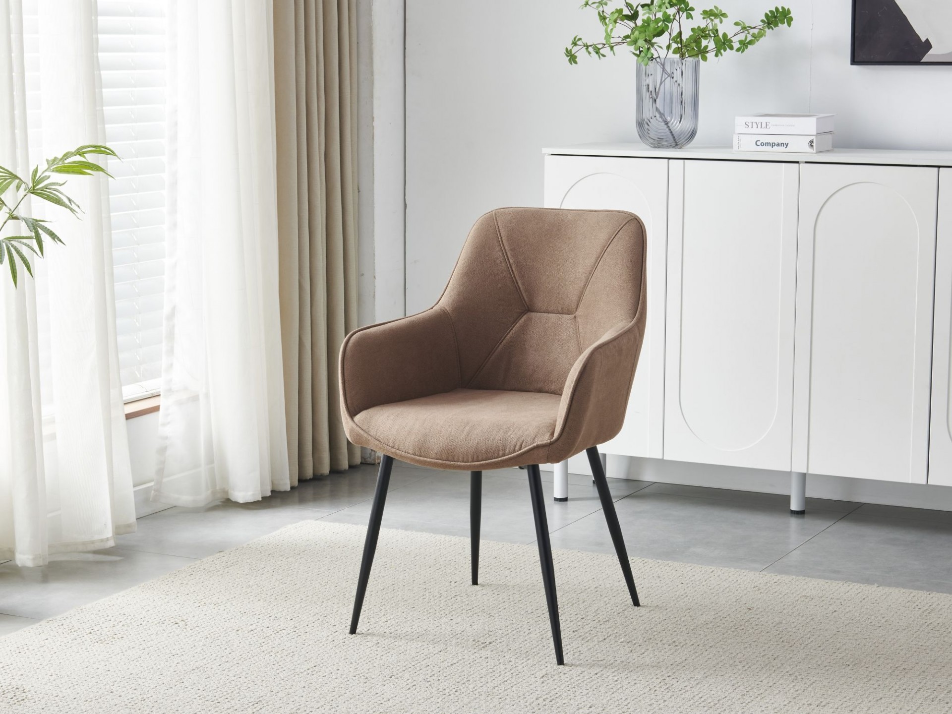 Stol stoji na črnem kovinskem podnožju iz prašno lakiranih cevi, kar zagotavlja eleganten in sodoben zaključek ter zaščito pred vsakodnevno obrabo. Robustna konstrukcija stola zagotavlja dolgotrajno vzdržljivost in nosilnost do 120 kg.