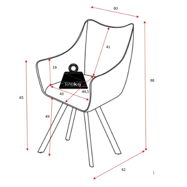 Jedilni stol MARBEL se poleg izjemnega videza ponaša tudi z udobjem, saj ima oblazinjeno hrbtišče in rokonaslone. Oblazinjen je v udobno tkanino v štirih različnih barvah, ki vam nudi udobje med sedenjem v vseh letnih časih. Moderni videz stola popestri vsako kuhinjo in jedilnico! Stol je vrtljiv za 180 stopinj, maksimalna nosilnost je 120 kg.